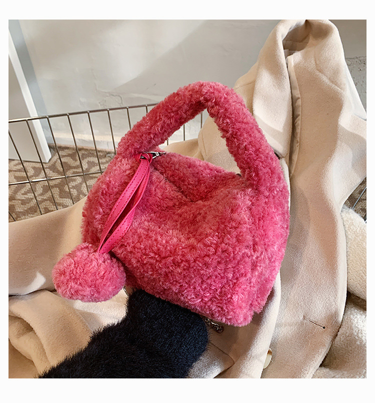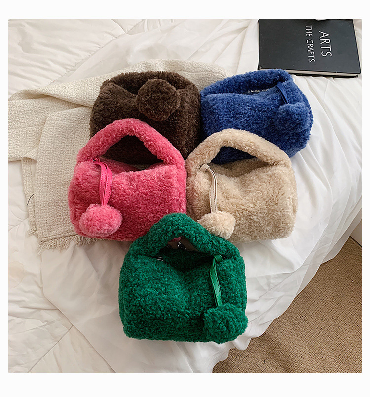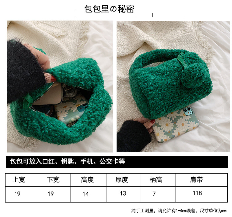 可爱迷你羊羔毛手提小包包女2025秋冬新款毛绒绒手腕包毛毛斜挎包