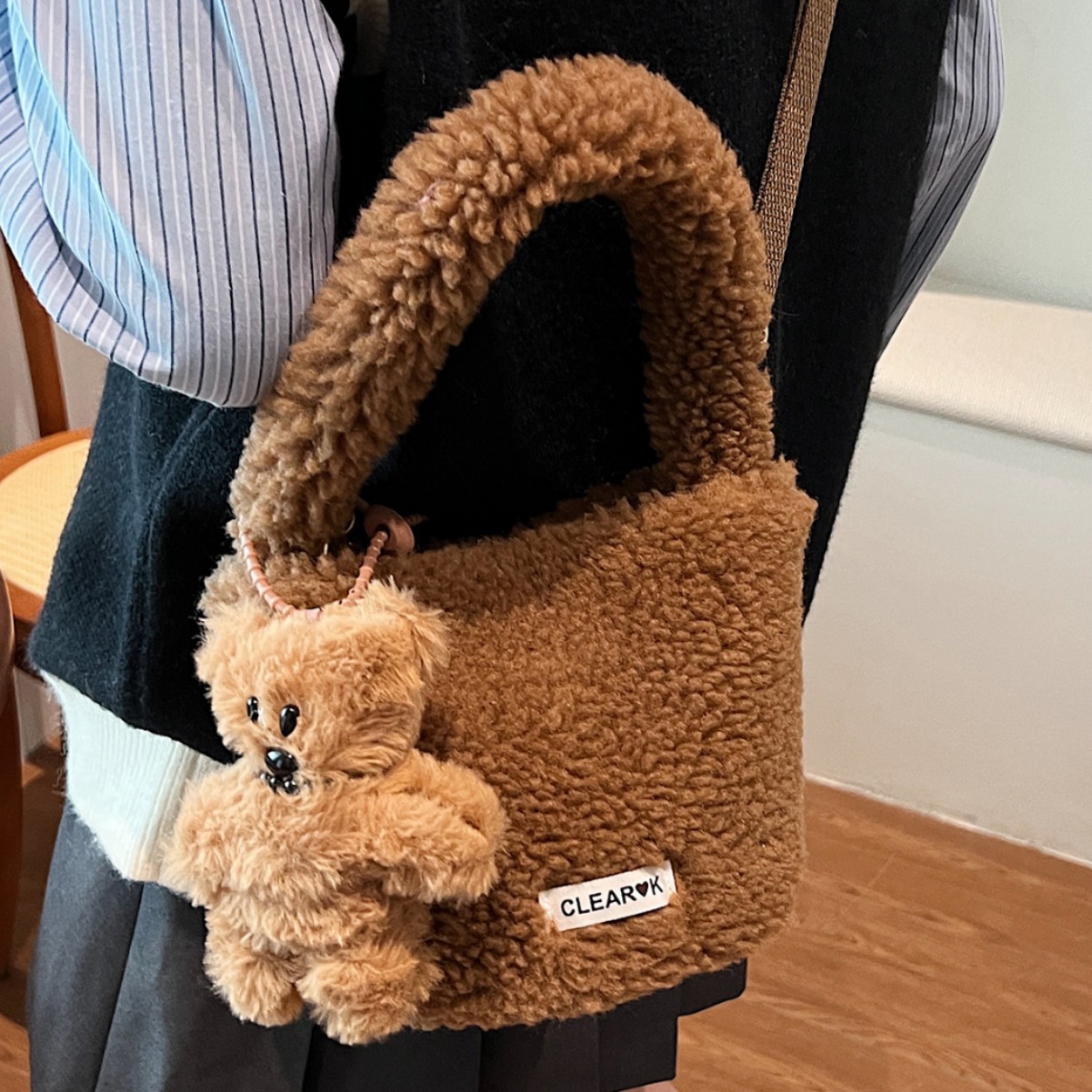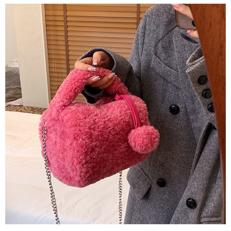 秋冬毛绒包包女2026新款韩国羊羔毛时尚单肩包可爱少女手提水桶包