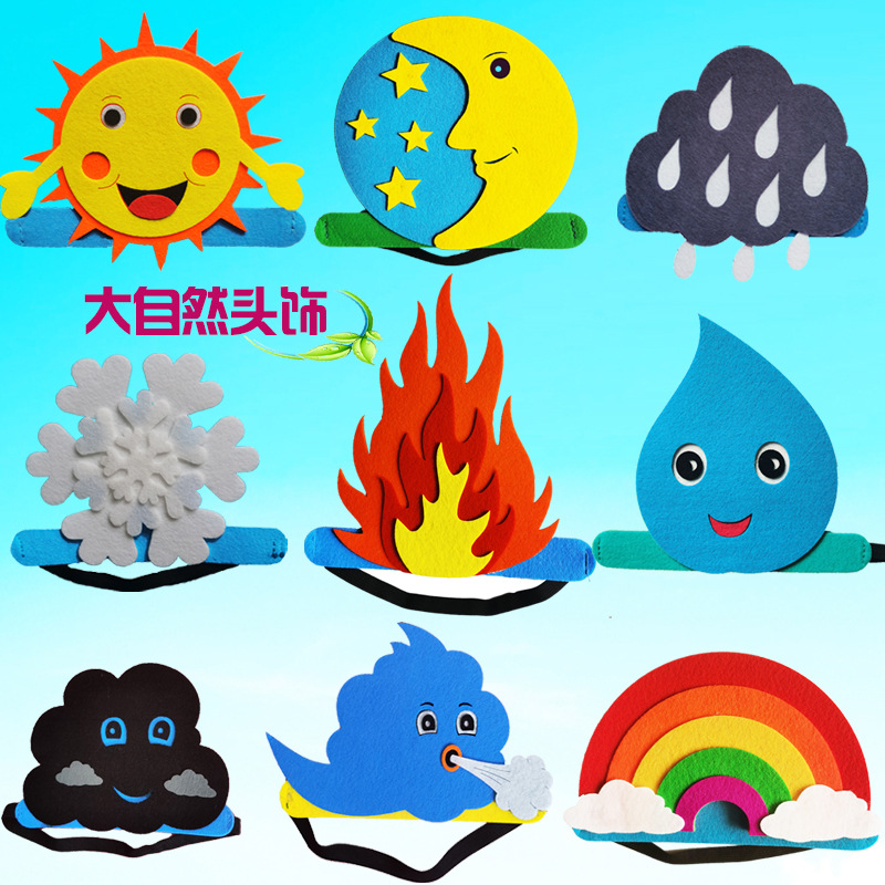 大自然の頭飾り幼稚園の演技道具子供帽子太陽地球星月大火水滴頭カバー