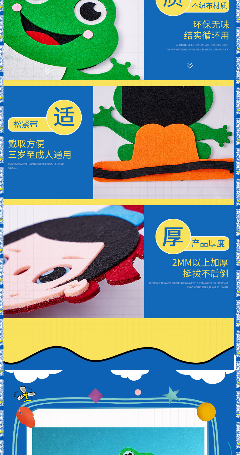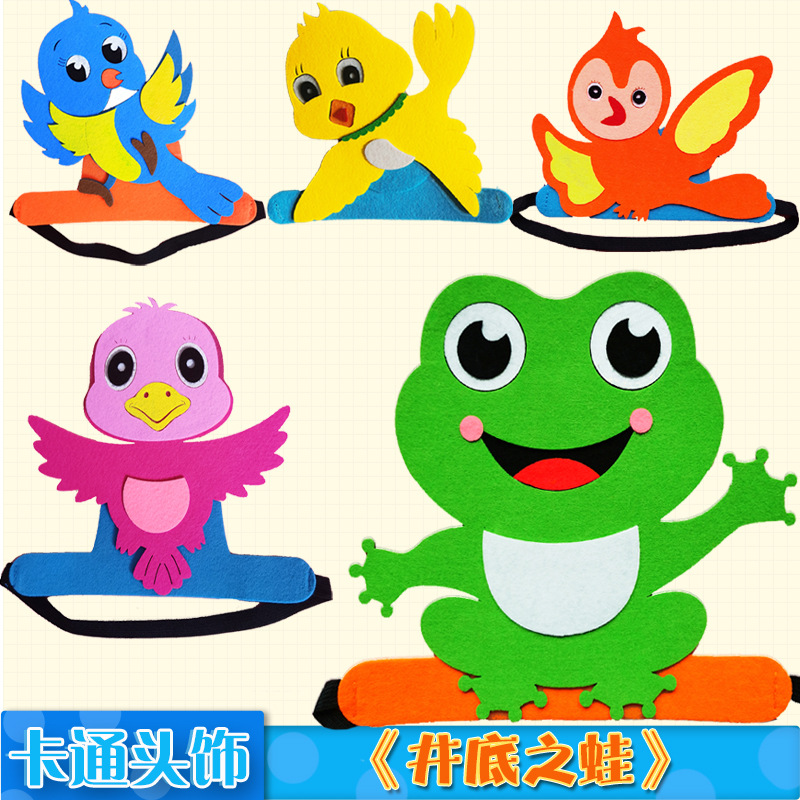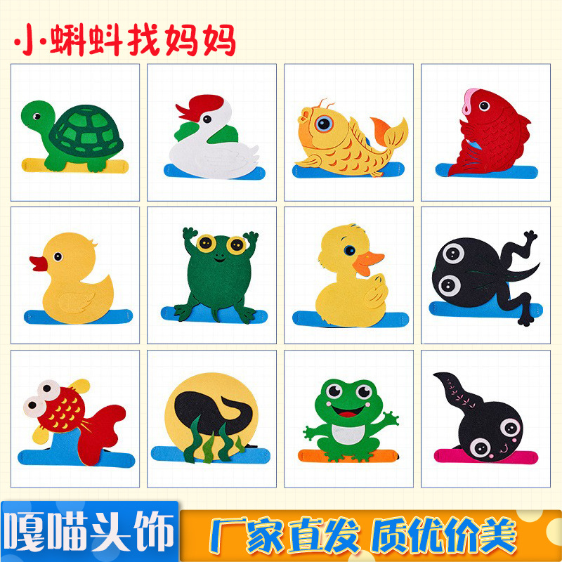 子供の頭飾りのオタマジャクシはお母さんの幼稚園を探して物語の舞台の教科書の劇の道具のカエルの帽子を演じます。