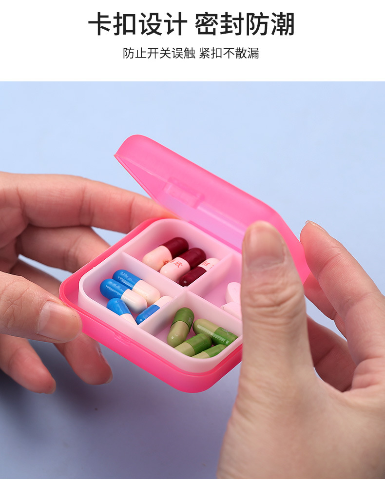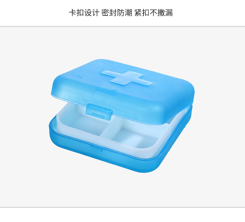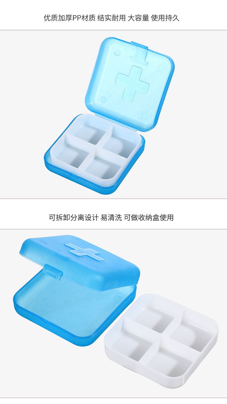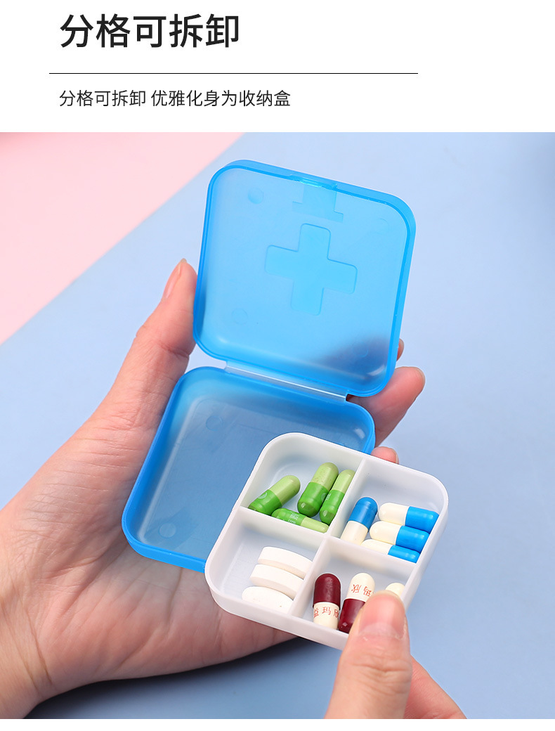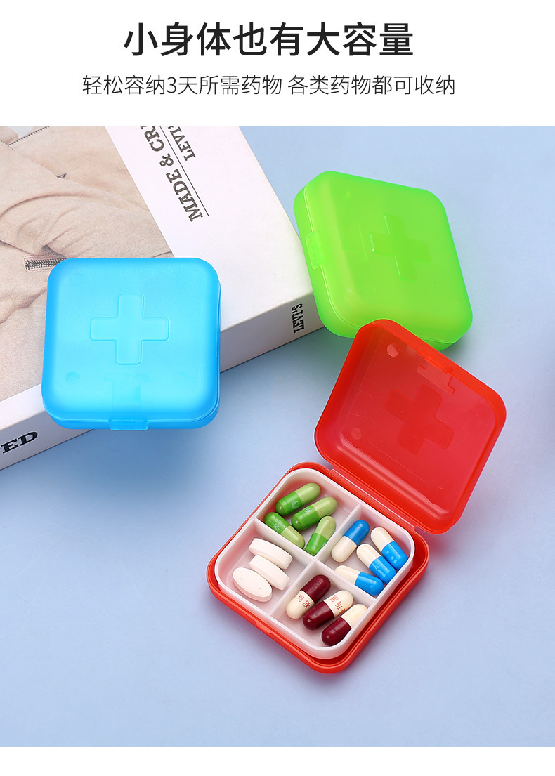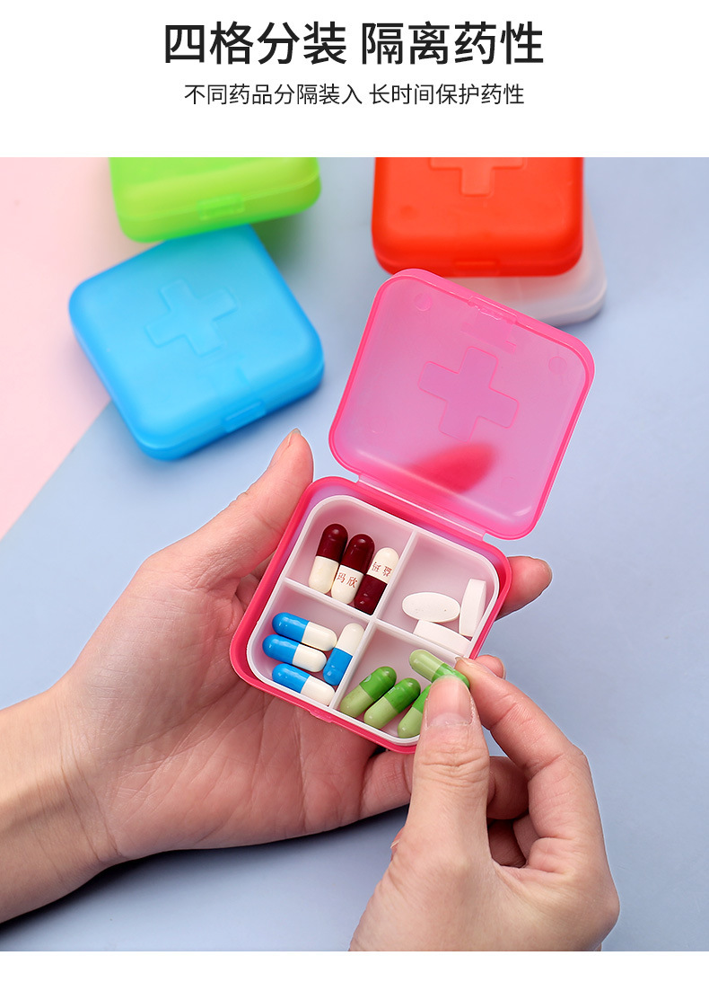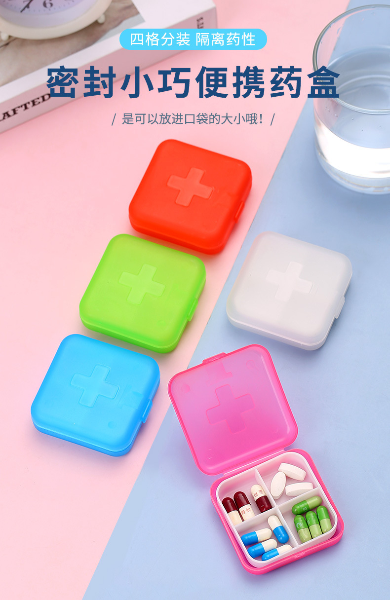 旅行十字药盒4格塑料分装小药盒方形便携随身储药盒药丸盒批发