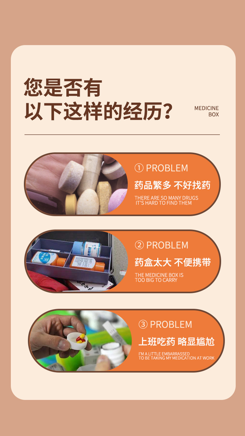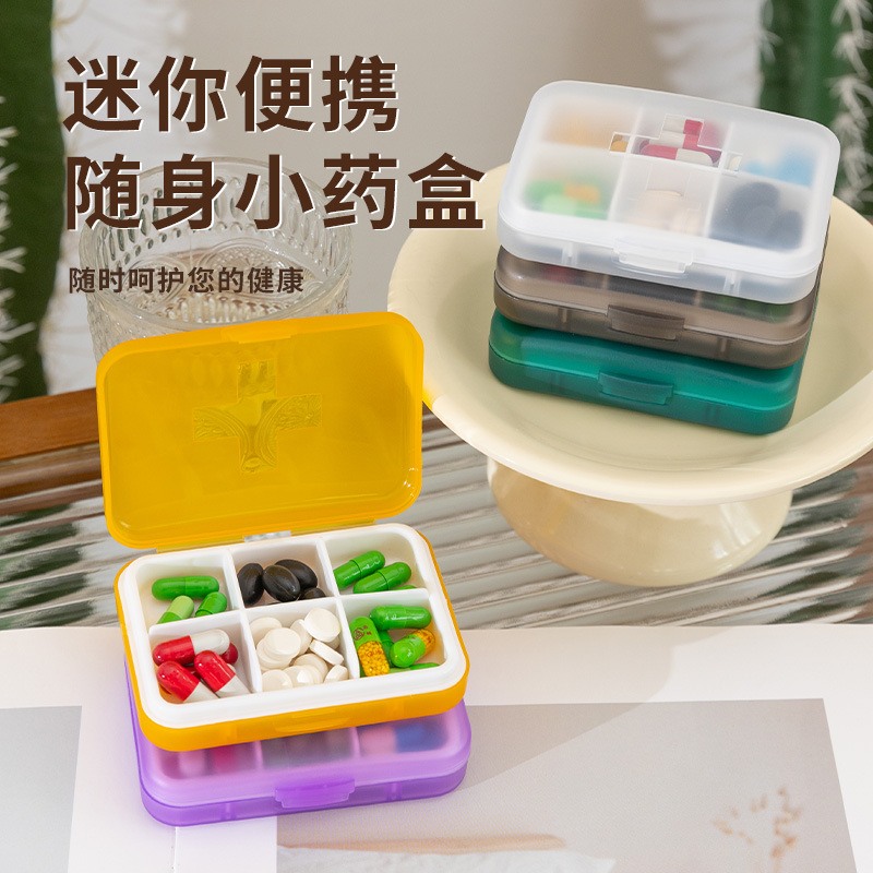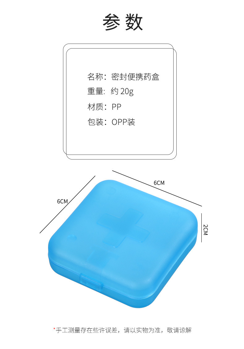 跨境便携式药盒 6格随身迷你出差旅行药物分装盒十字药片药丸一周