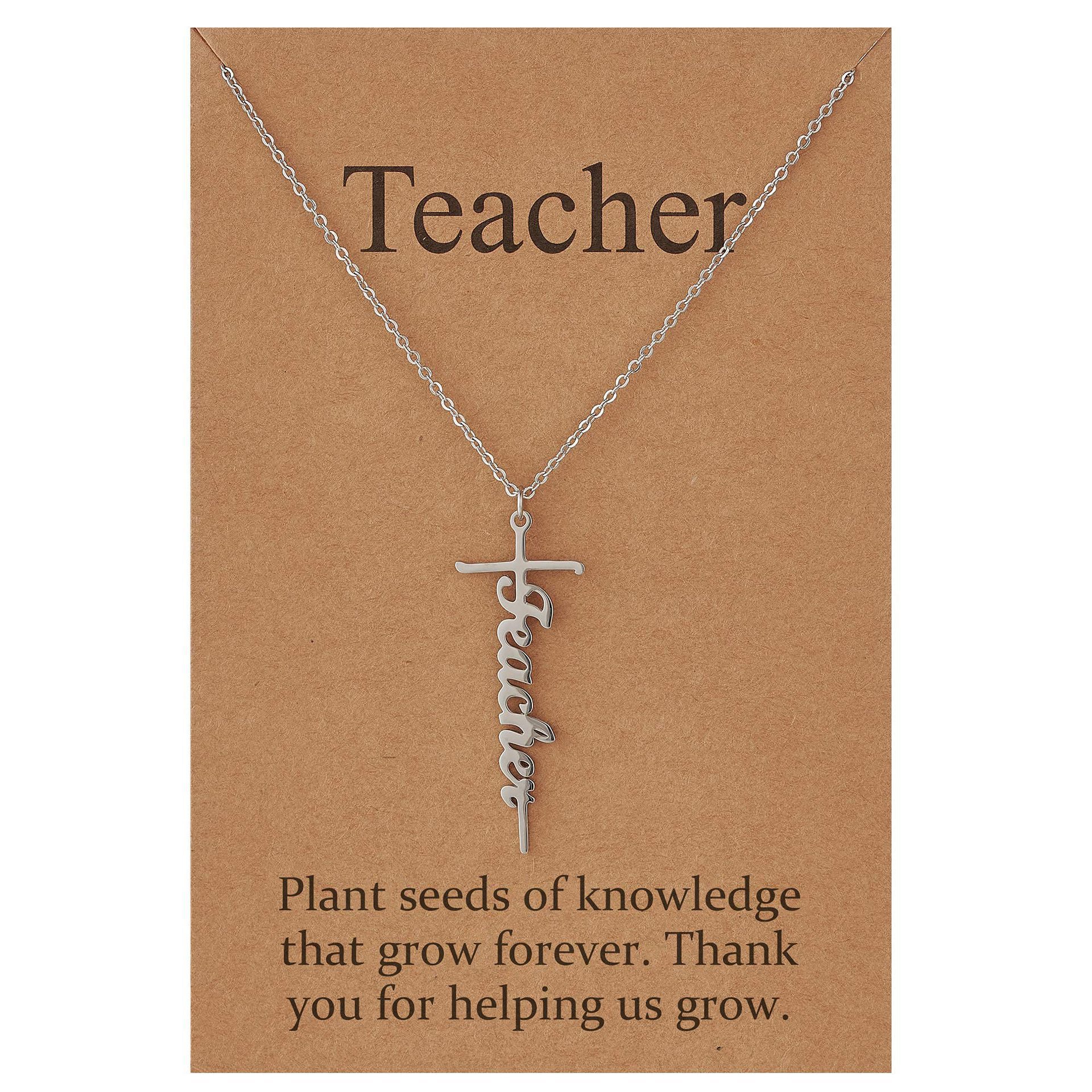 女士十字架项链钢色teacher礼物节日项链不锈钢名字雕刻十字项链