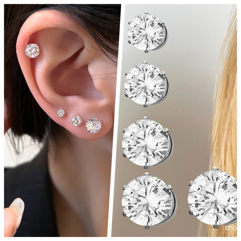 国境を越えたファッション耳のないジルコン耳飾りステンレス磁石六爪ジルコンピアス