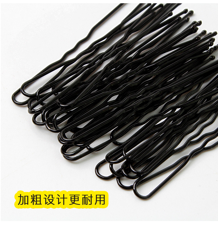 シンプルな黒い一字のヘアピンはペンキを落とさずに太い波を加えて髪飾りを挟んでいます。