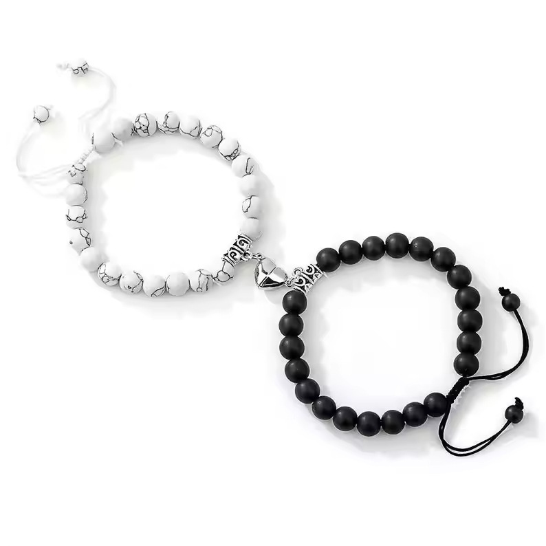 Wish速売通8mm白松石カップルブレスレットフロスト黒愛磁気吸引感応松石カップルブレスレット