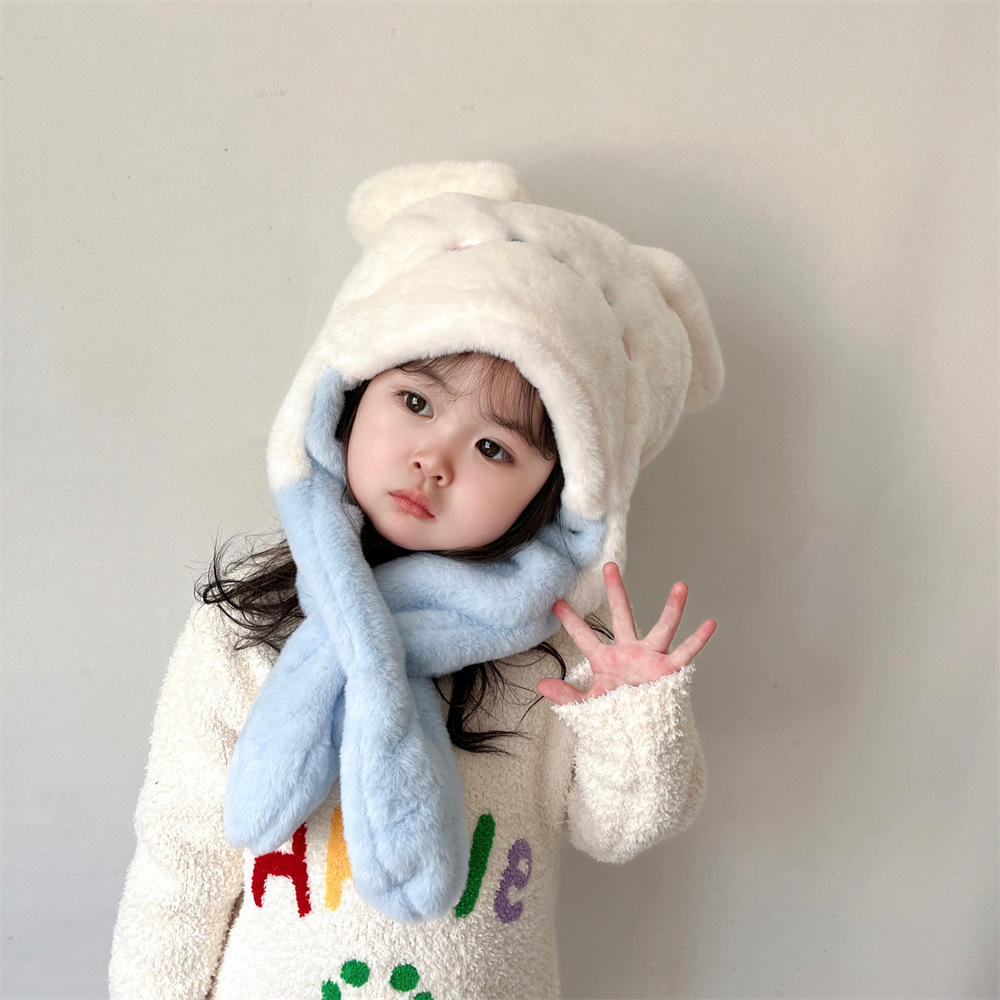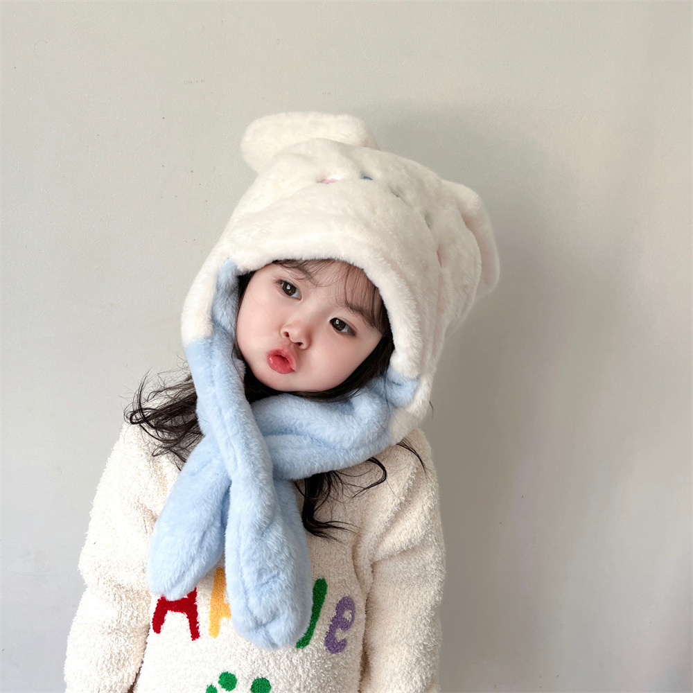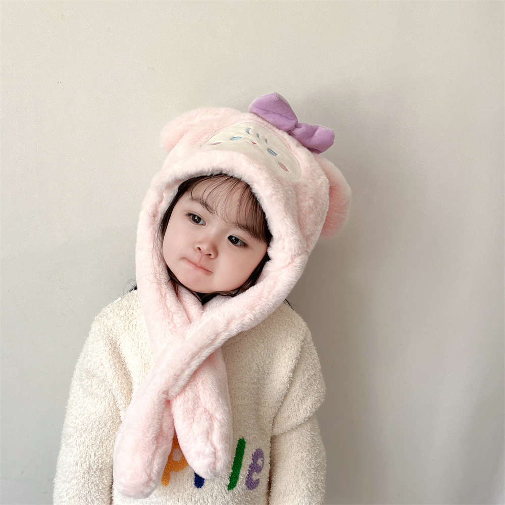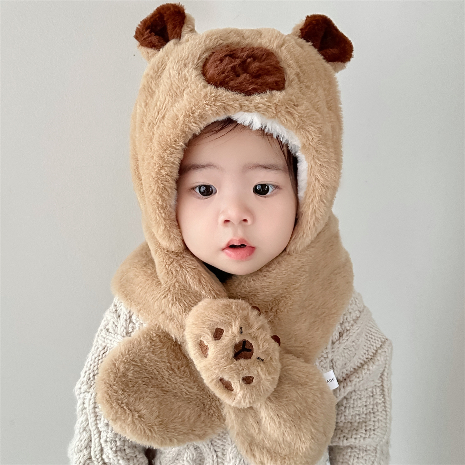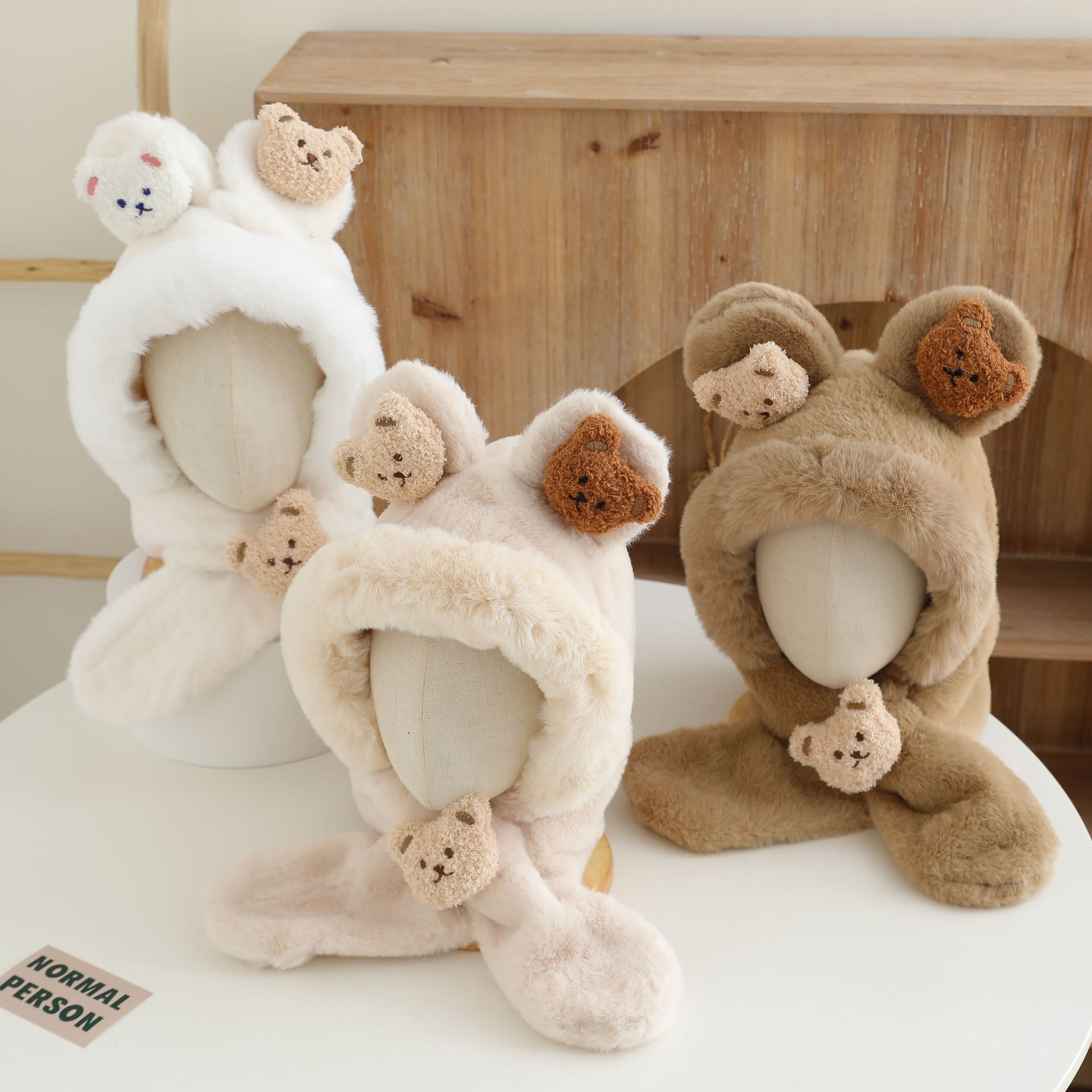冬の男女児童一体帽子セットアニメ熊人形のぬいぐるみが首を囲んでかわいい保温快適な首を囲んでいる