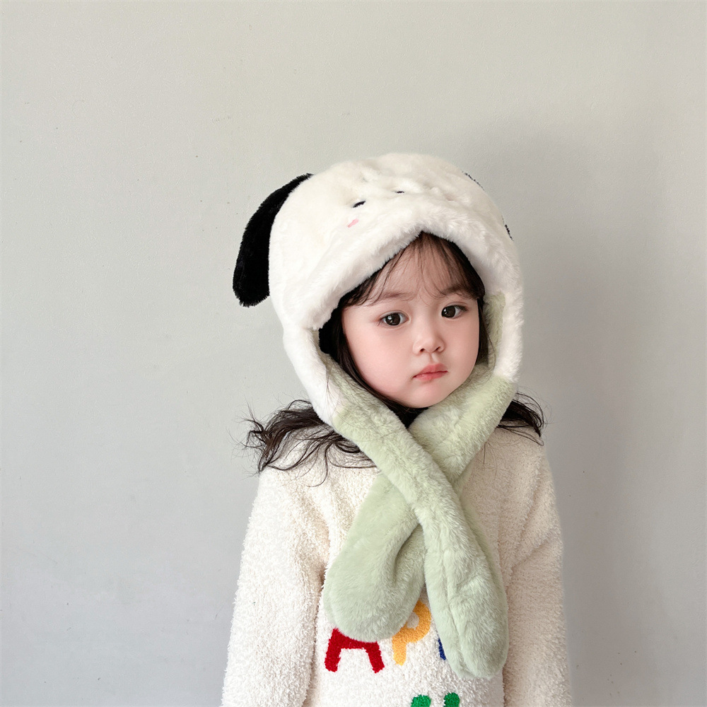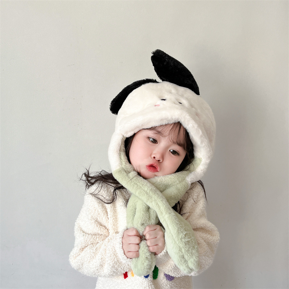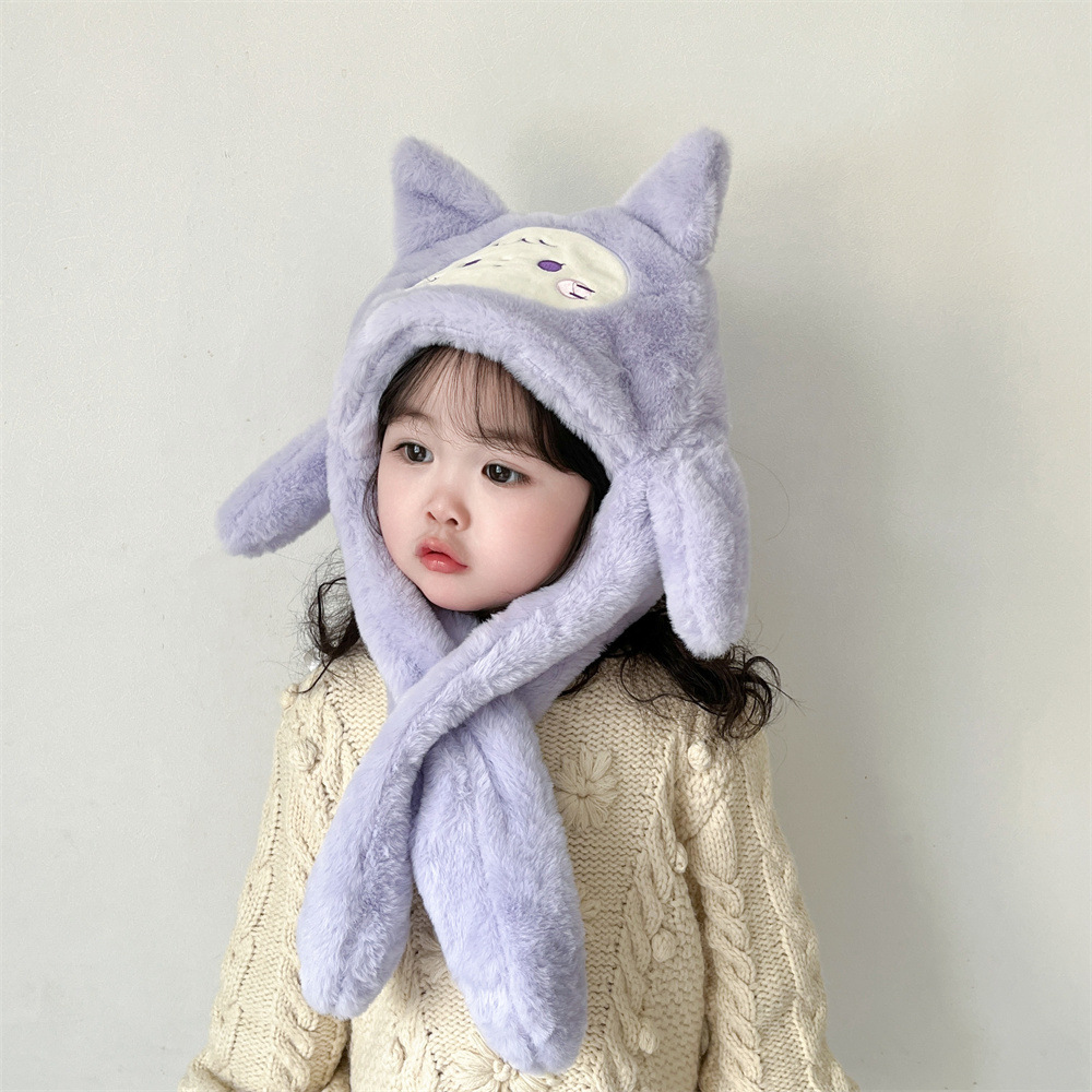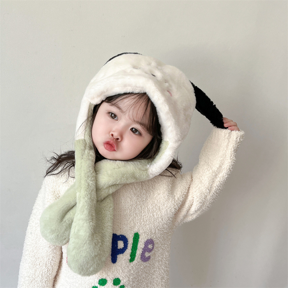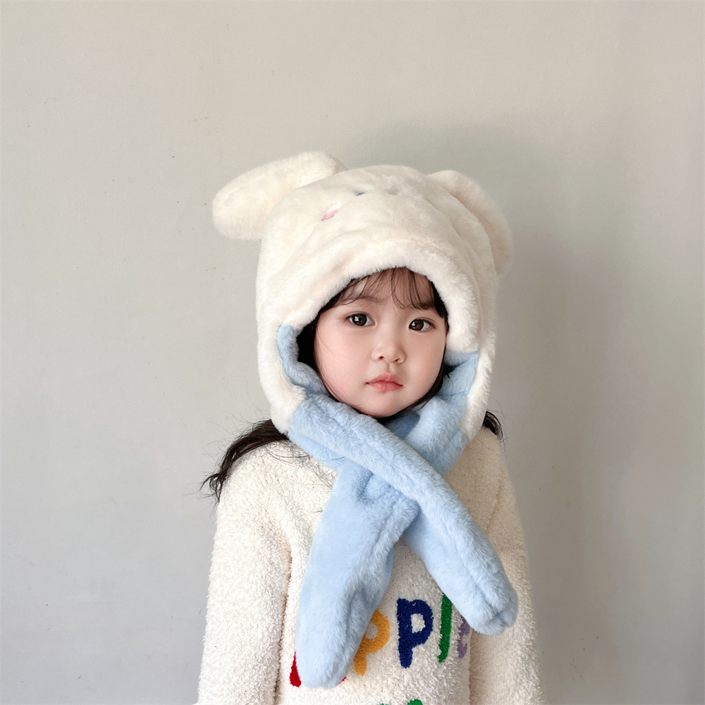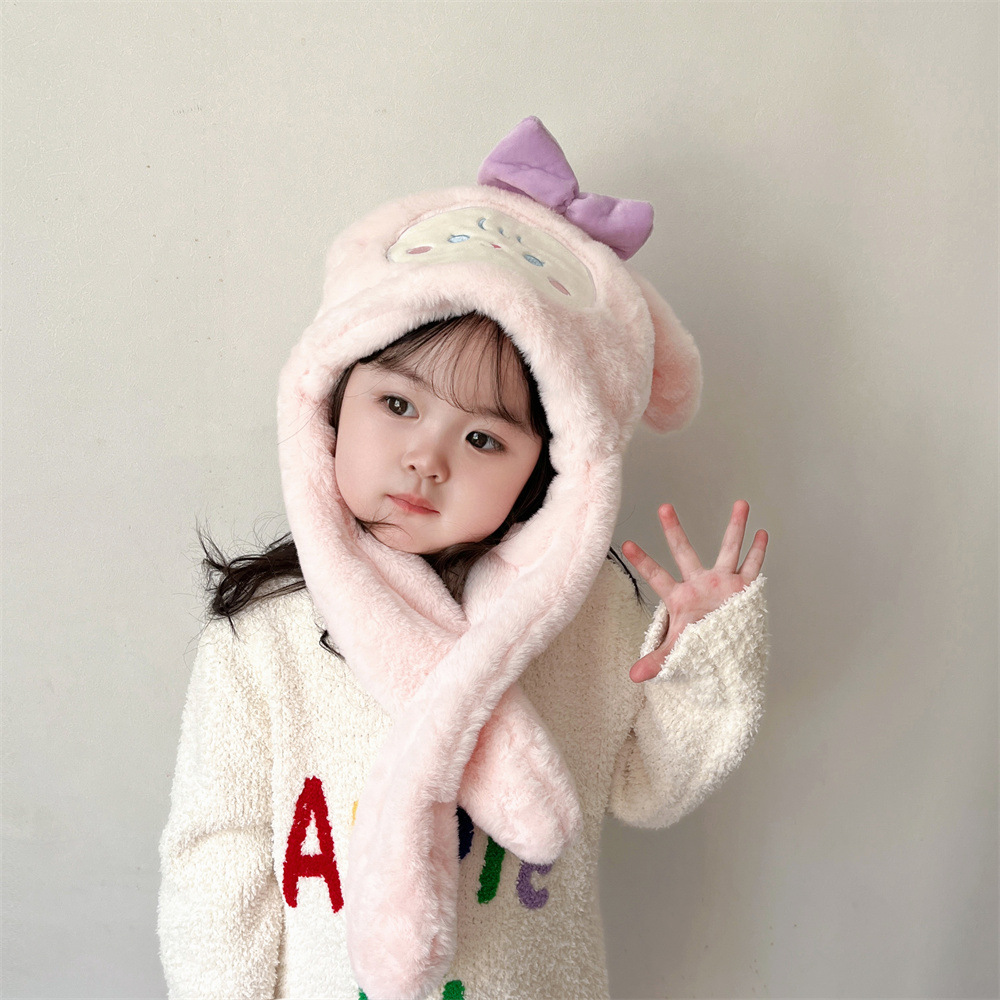 冬の男女児童一体帽子セットアニメ熊人形のぬいぐるみが首を囲んでかわいい保温快適な首を囲んでいる