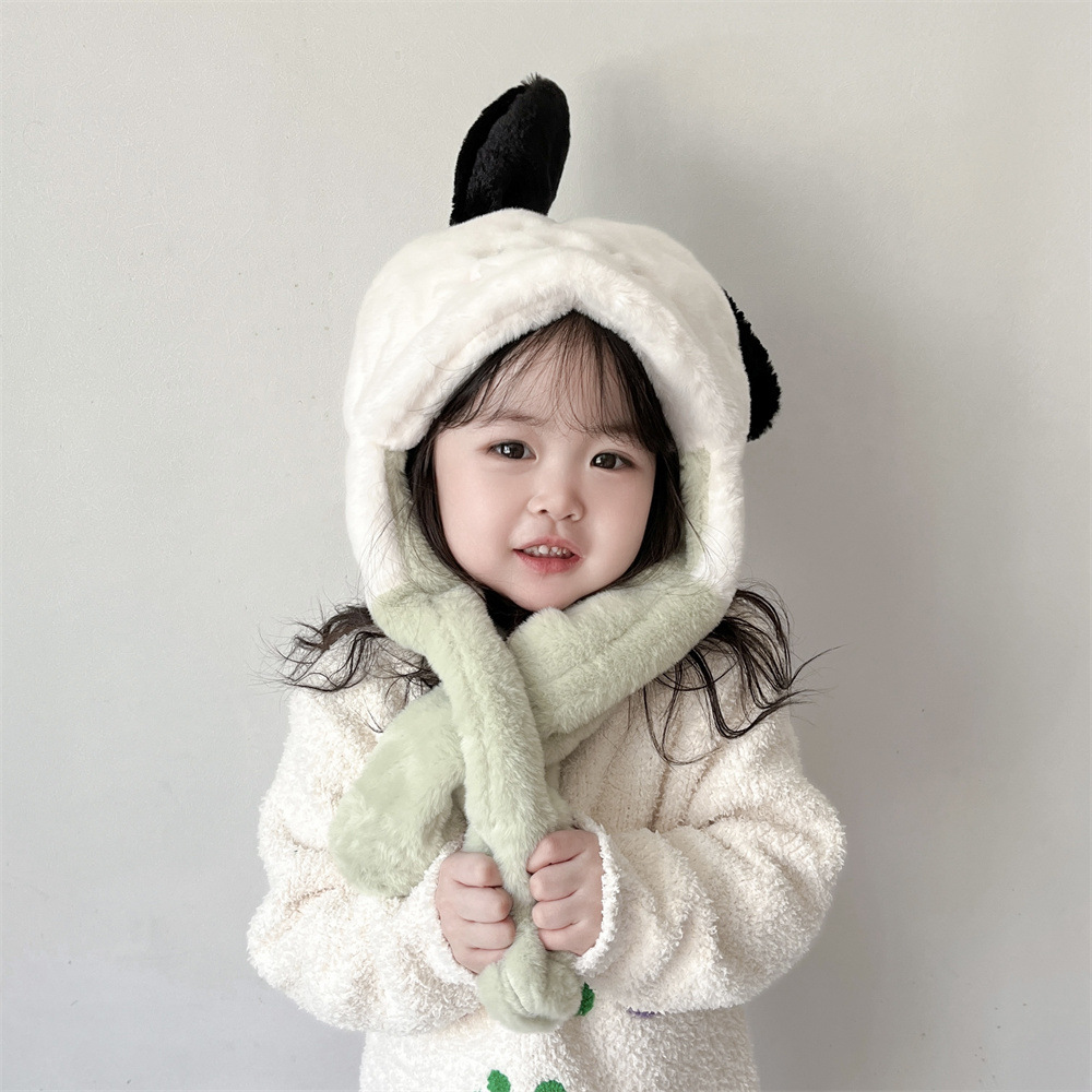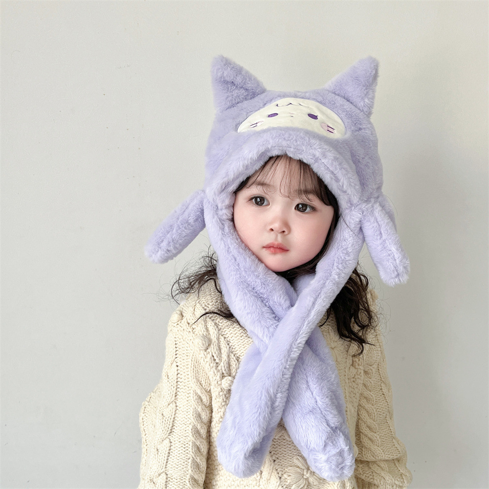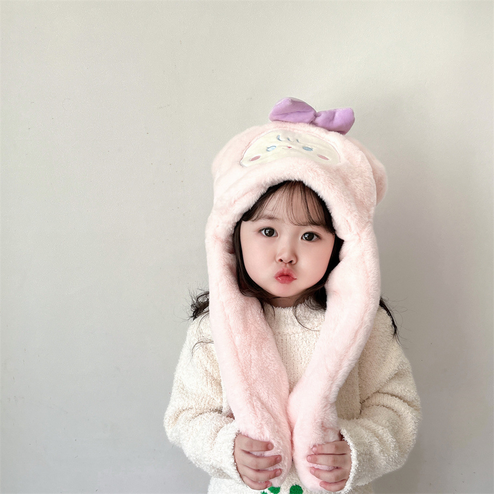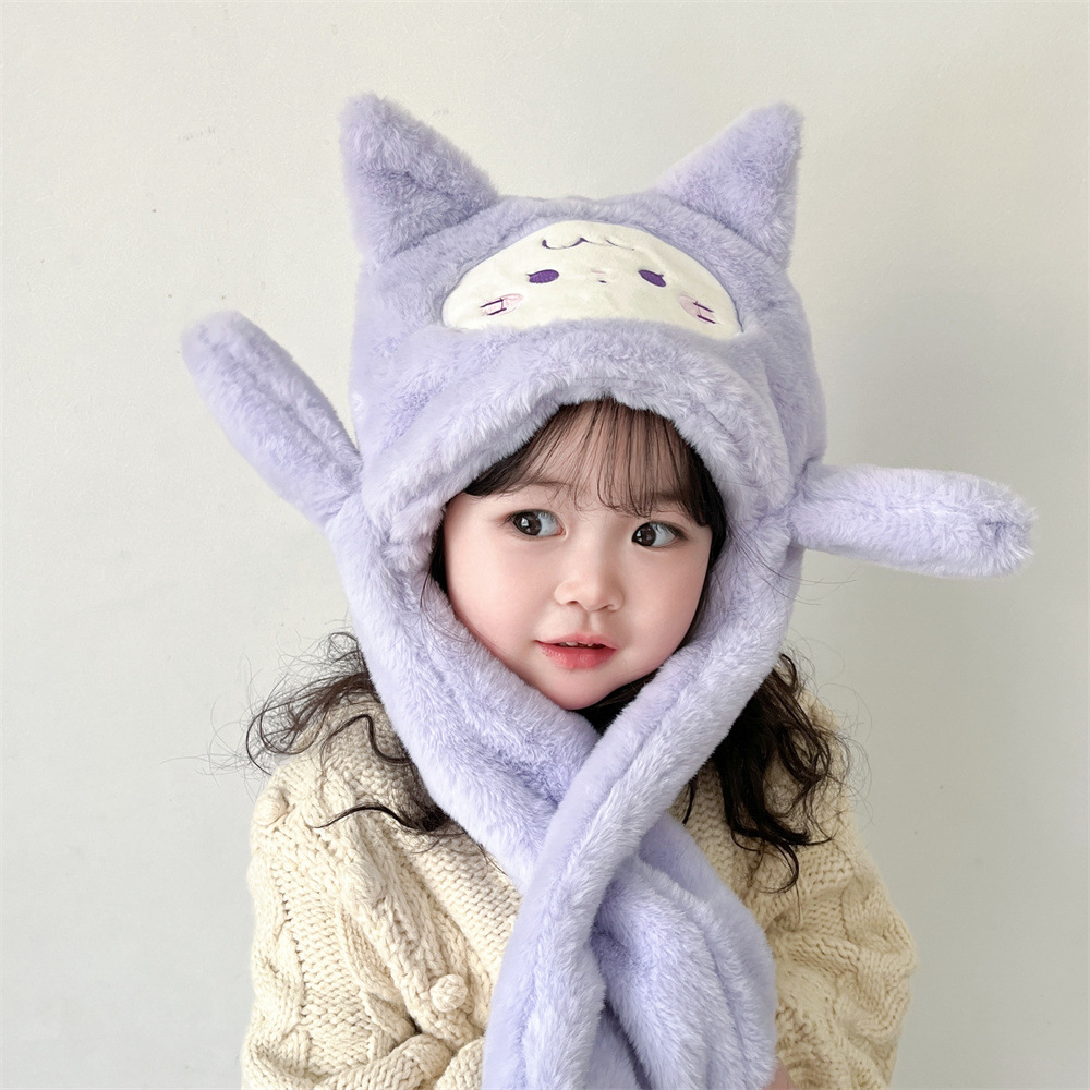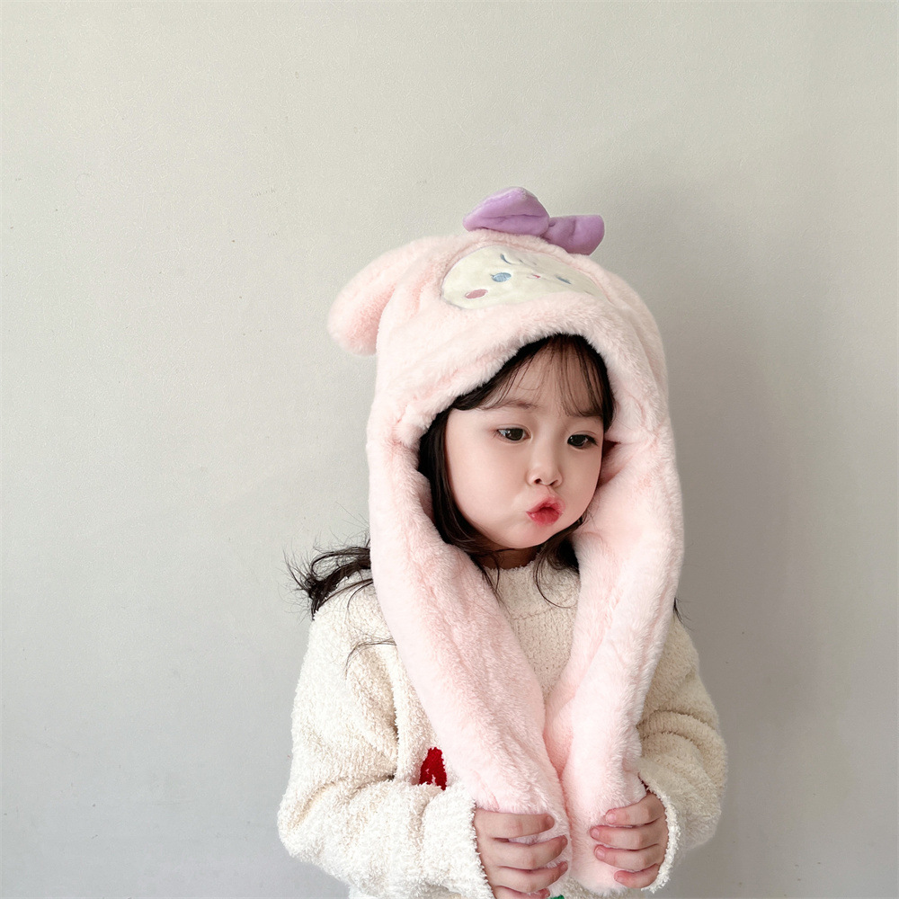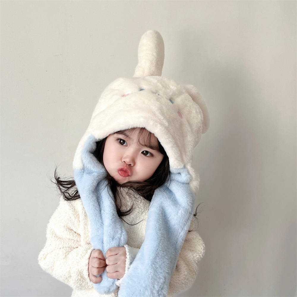 冬季可爱儿童帽子围巾一体女童耳朵会动会叫保暖毛绒加绒宝宝围脖