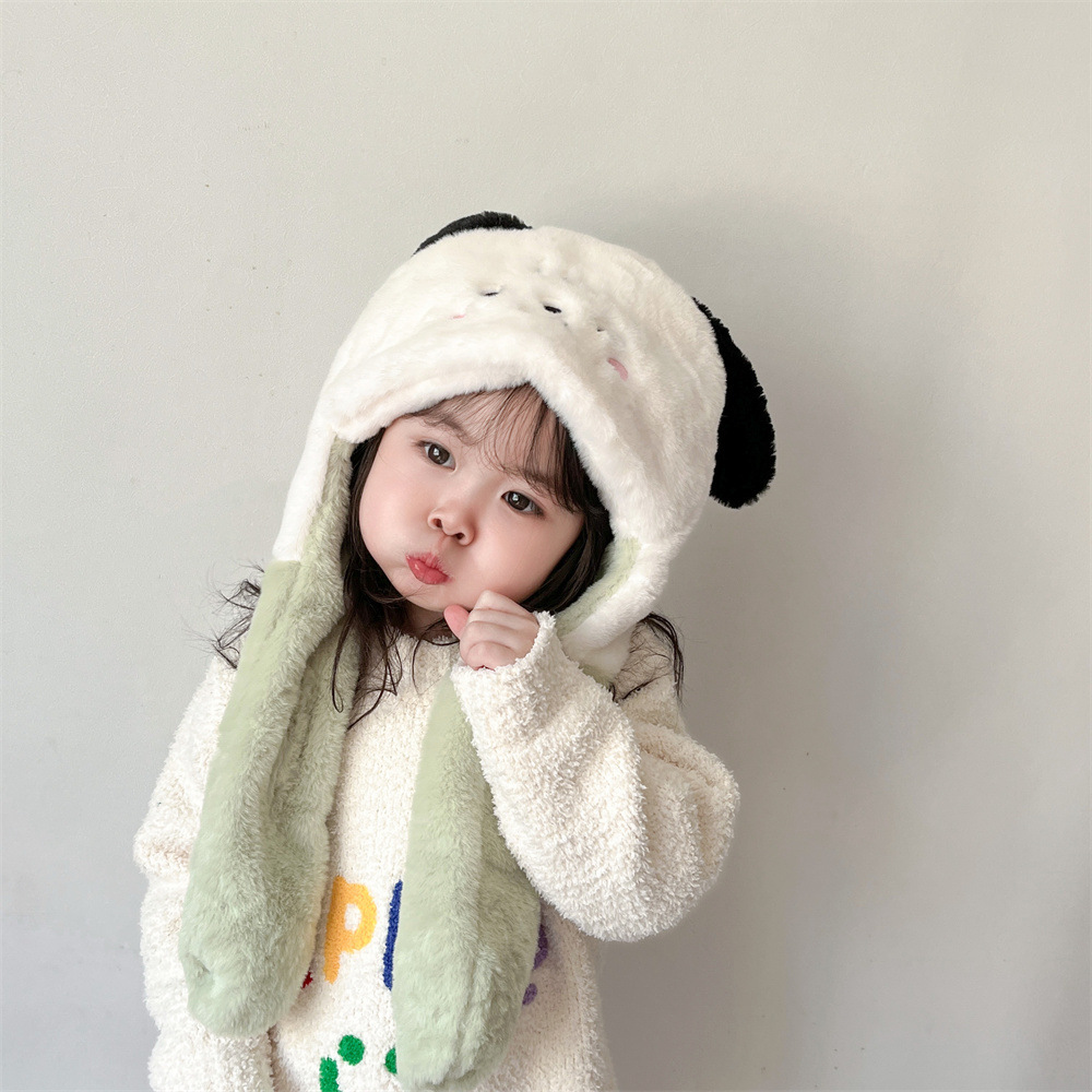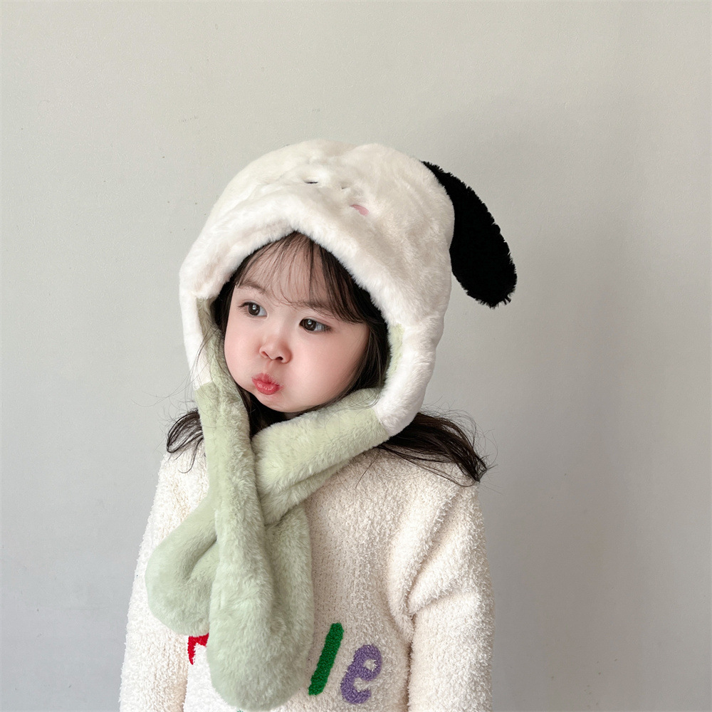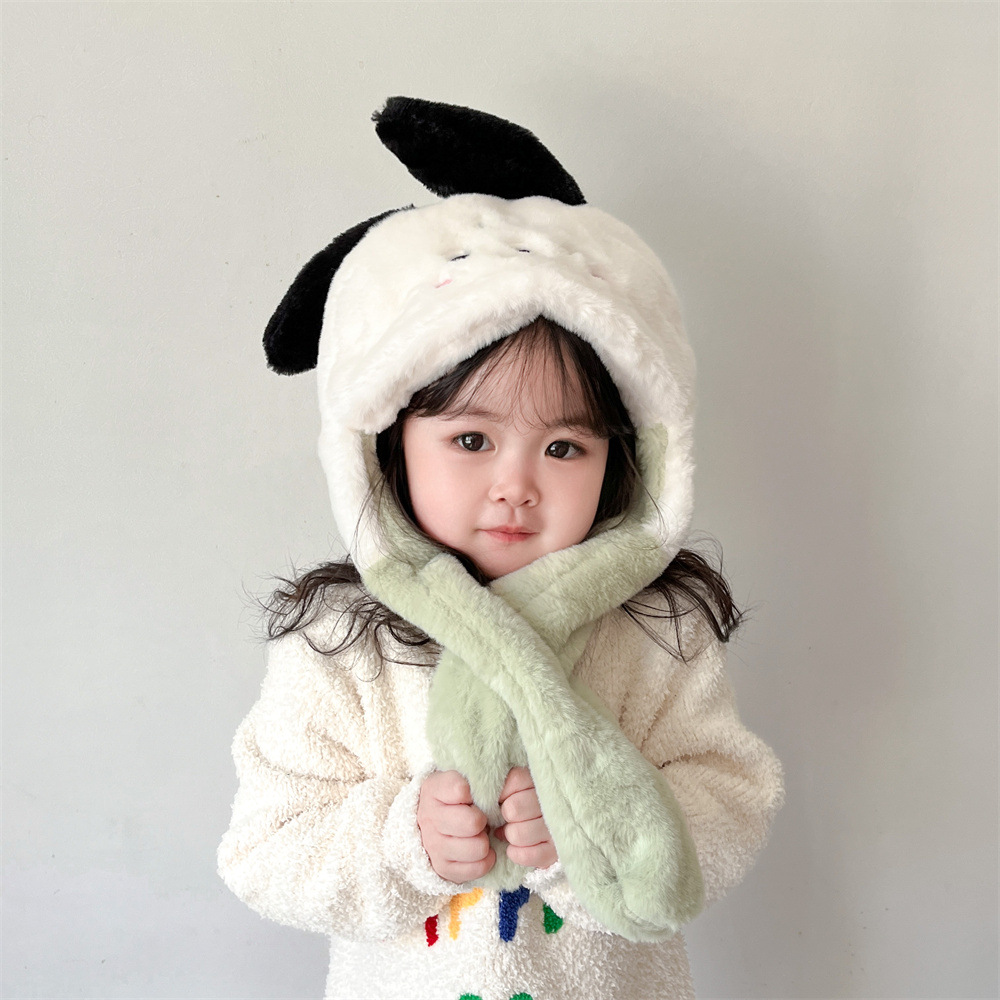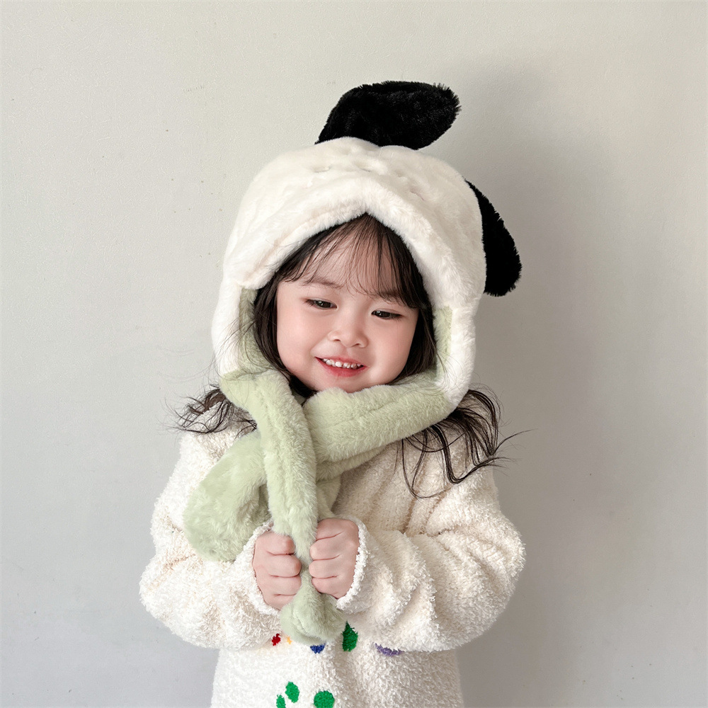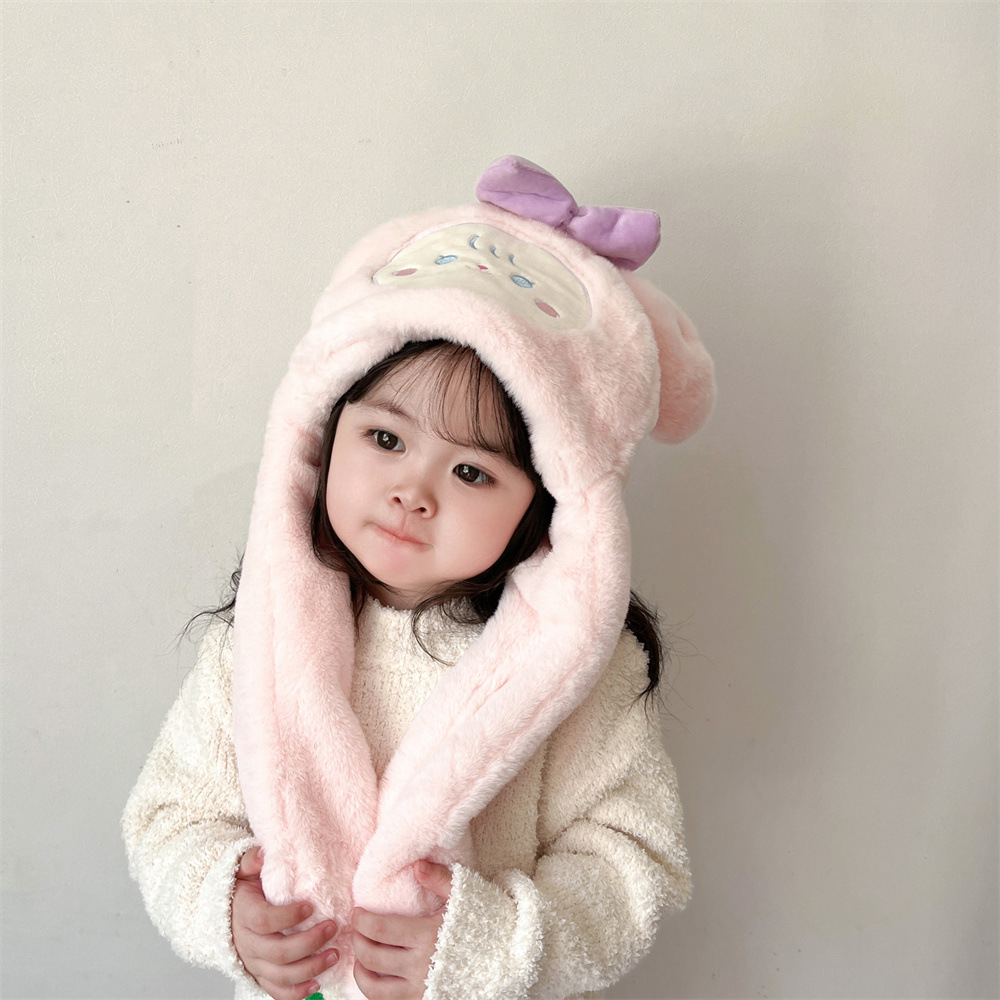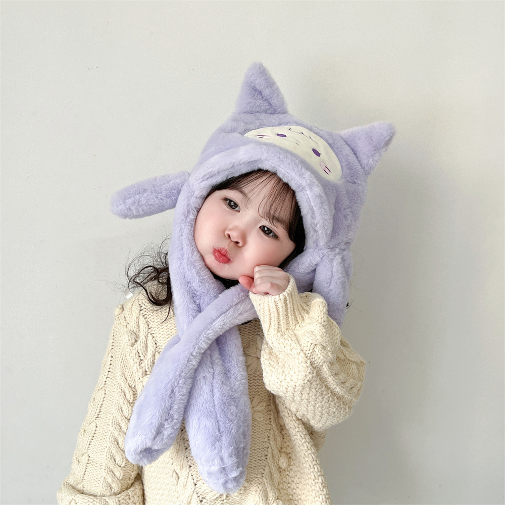 冬季可爱儿童帽子围巾一体女童耳朵会动会叫保暖毛绒加绒宝宝围脖