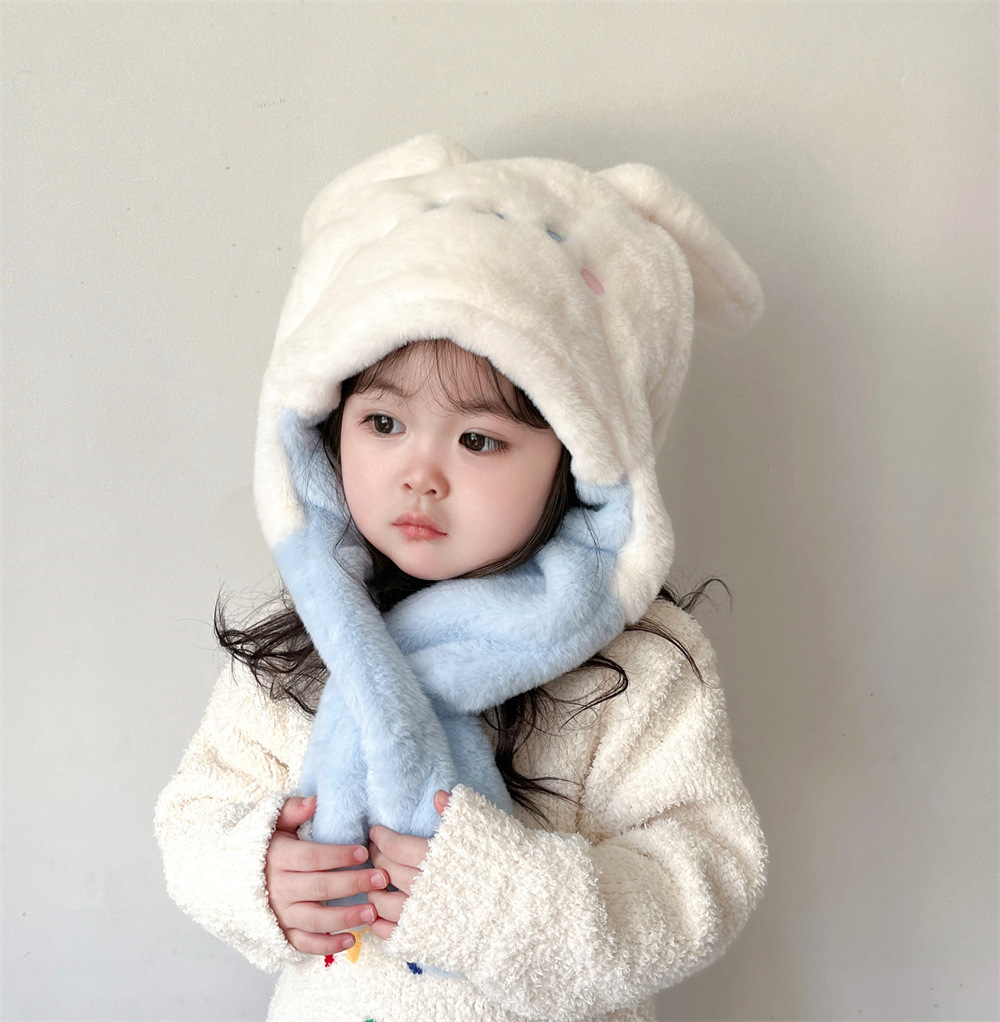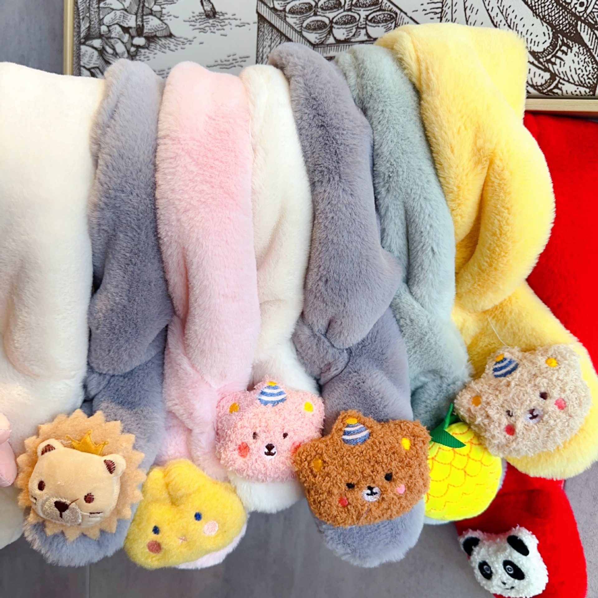 2025 新しい子供のスカーフ秋と冬ぬいぐるみ親子暖かくてかわいい肥厚漫画模造ウサギの毛皮のベビースカーフ