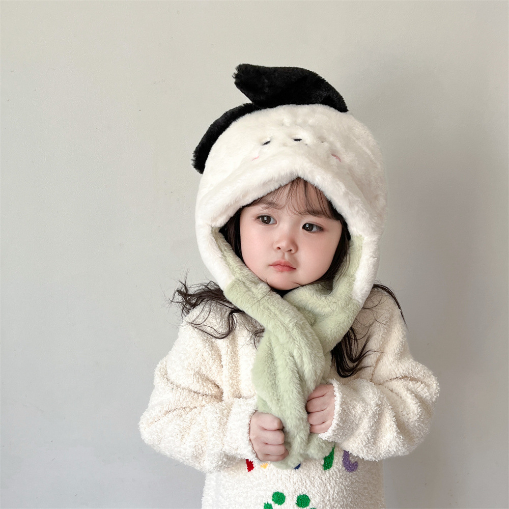 子供の帽子のマフラーの一体の秋冬の2つのセットは保温してかわいいです。