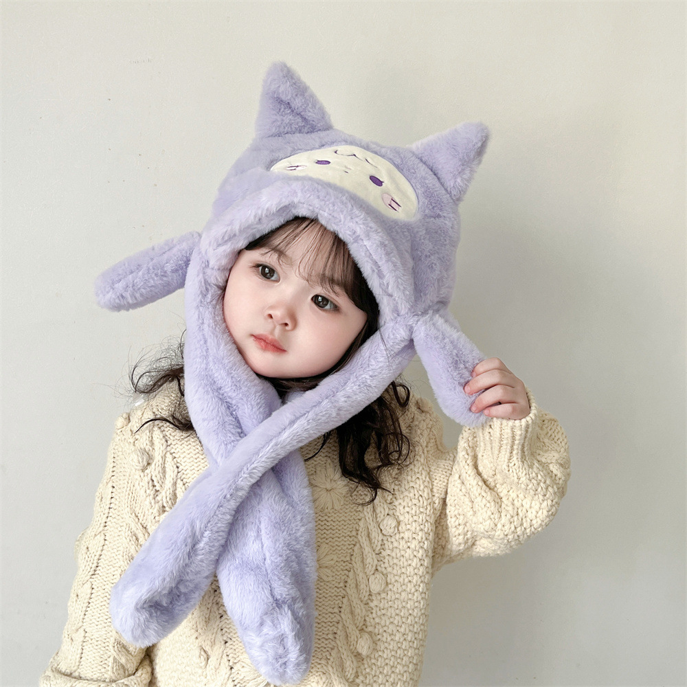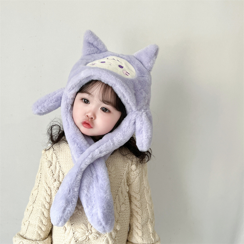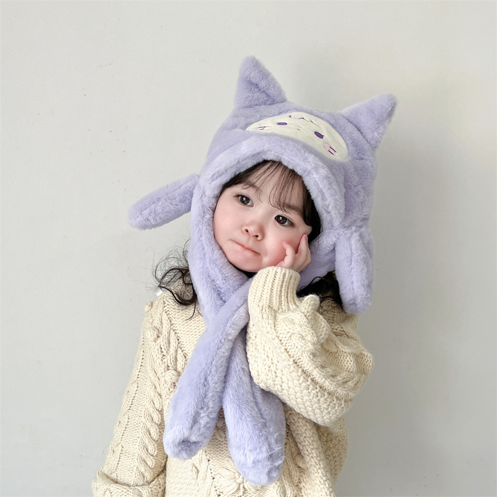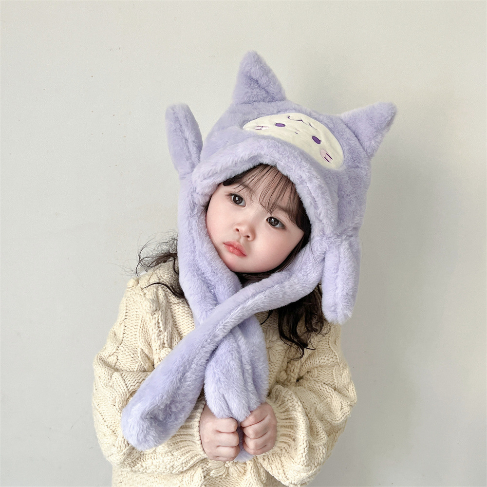 秋冬の子供の帽子のマフラーの一体の保温のぬいぐるみのかわいい赤ちゃんの頭の帽子の男女の子供の耳の帽子