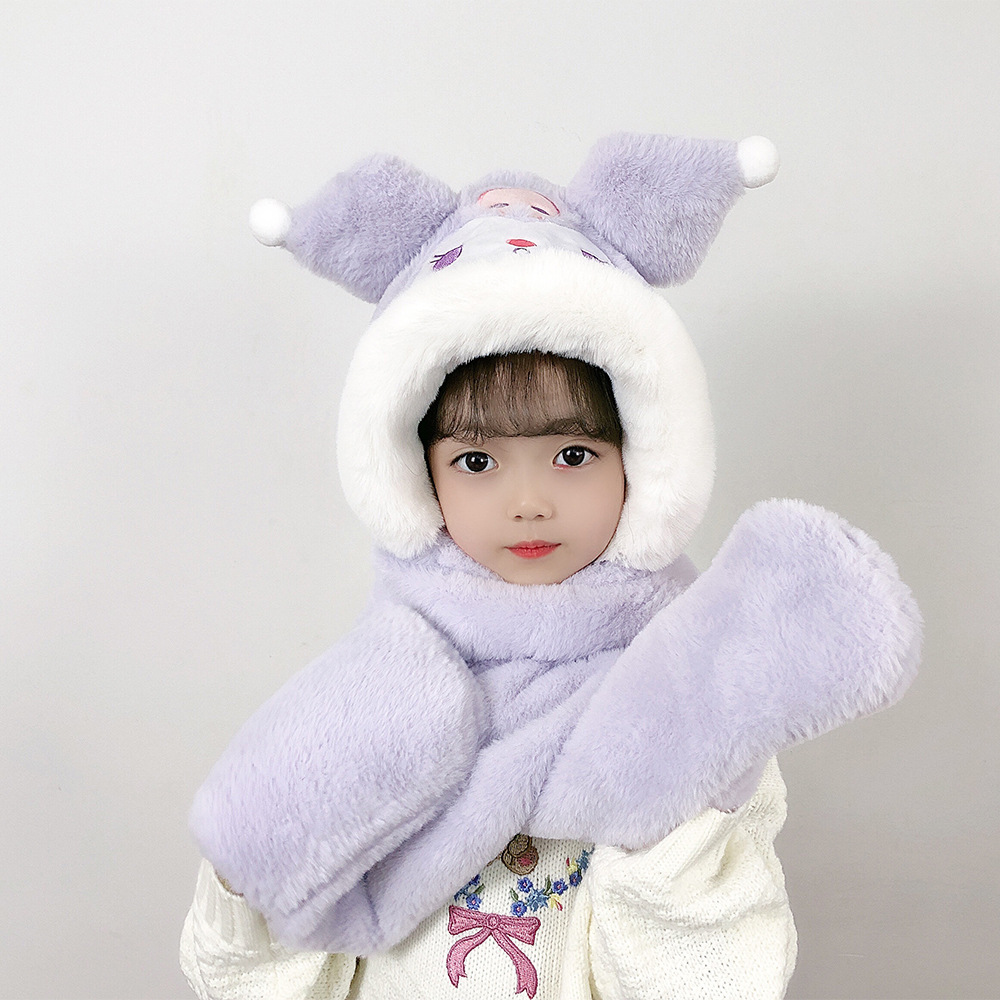 子供の冬の帽子は首を囲んで一体の帽子の3つのセットの手袋を持っています。