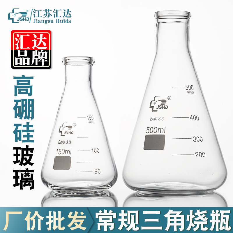 汇達直口三角フラスコ錐瓶実験室用器高ホウ素シリコンガラス平底フラスコを厚くした