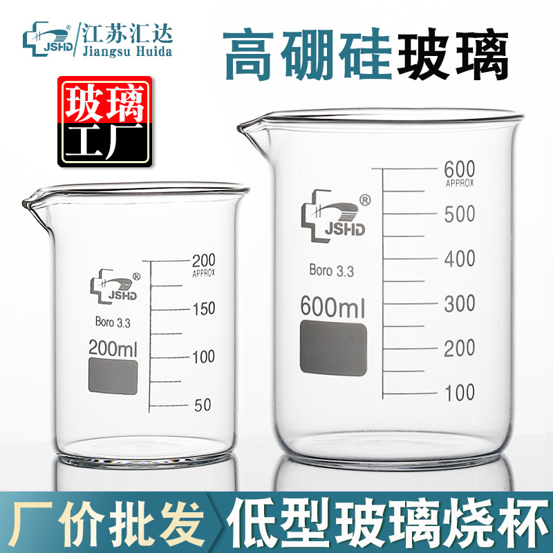 汇達ガラスビーカーメーカー直供高ホウ素シリコン3.3材料厚さスケール低型ビーカー実験室用計量カップ