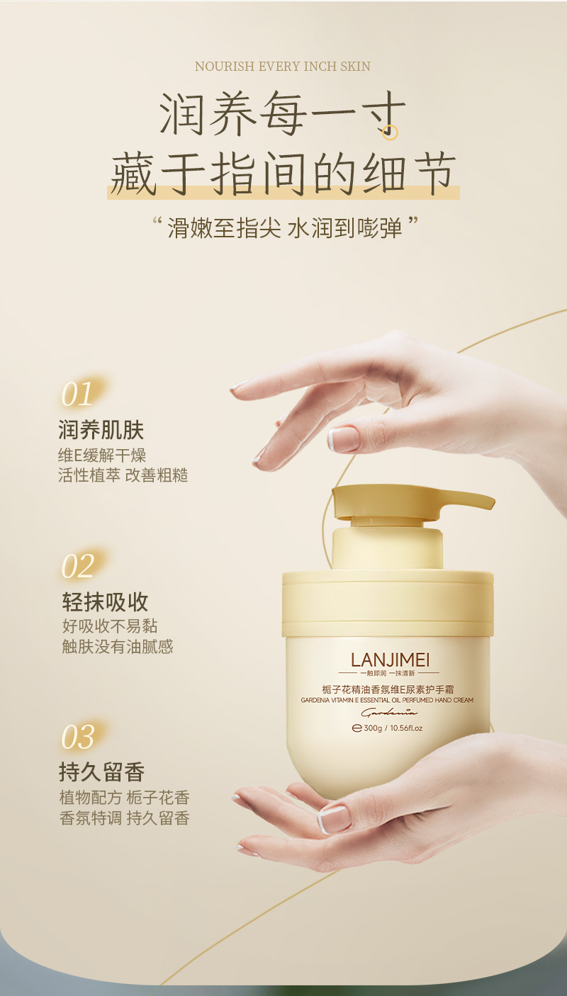 抖音で人気のベイリンメイ クチナシ精油配合 フレグランス ビタミンE 尿素配合 ハンドクリーム 保湿 長時間持続する香り