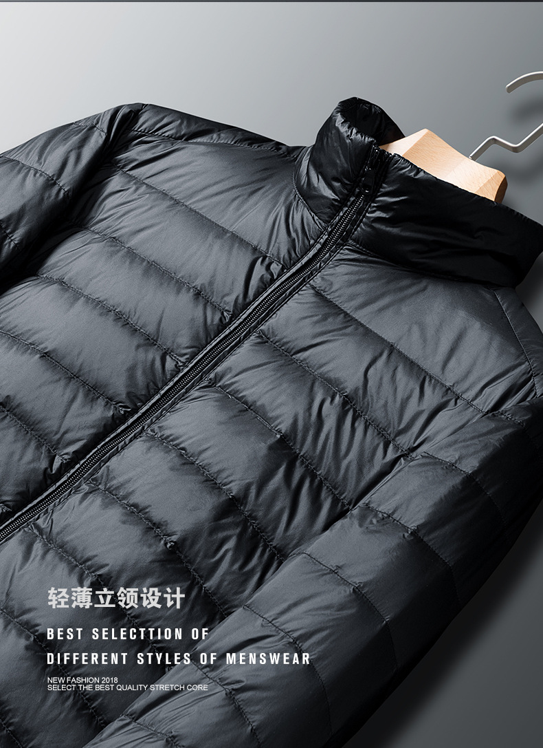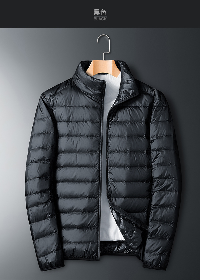 2024年冬メンズ軽量ダウンジャケットショート丈スタンドカラーファッションホワイトダックダウン保温ジャケットメンズ軽寒対策保温