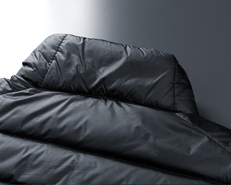 冬のダウンジャケットの男性の袖なしのスタンドカラーの純色は、ダウンベストの男性のスポーツカジュアルな馬のバックを開くことができます。