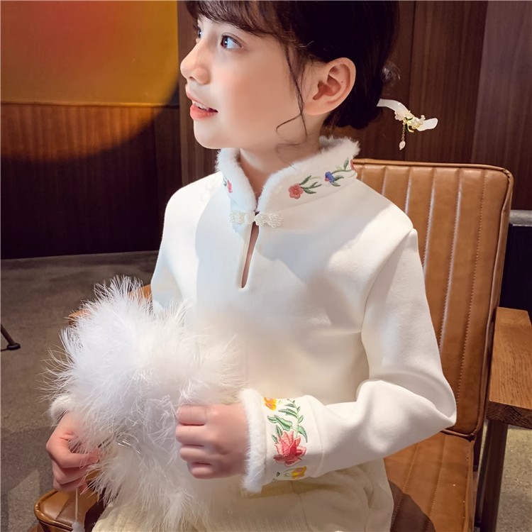女の子の中国風刺繍上着の新しい中国風の女の子のベルベットのシャツの子供のtシャツの冬の服装の洋風の新型