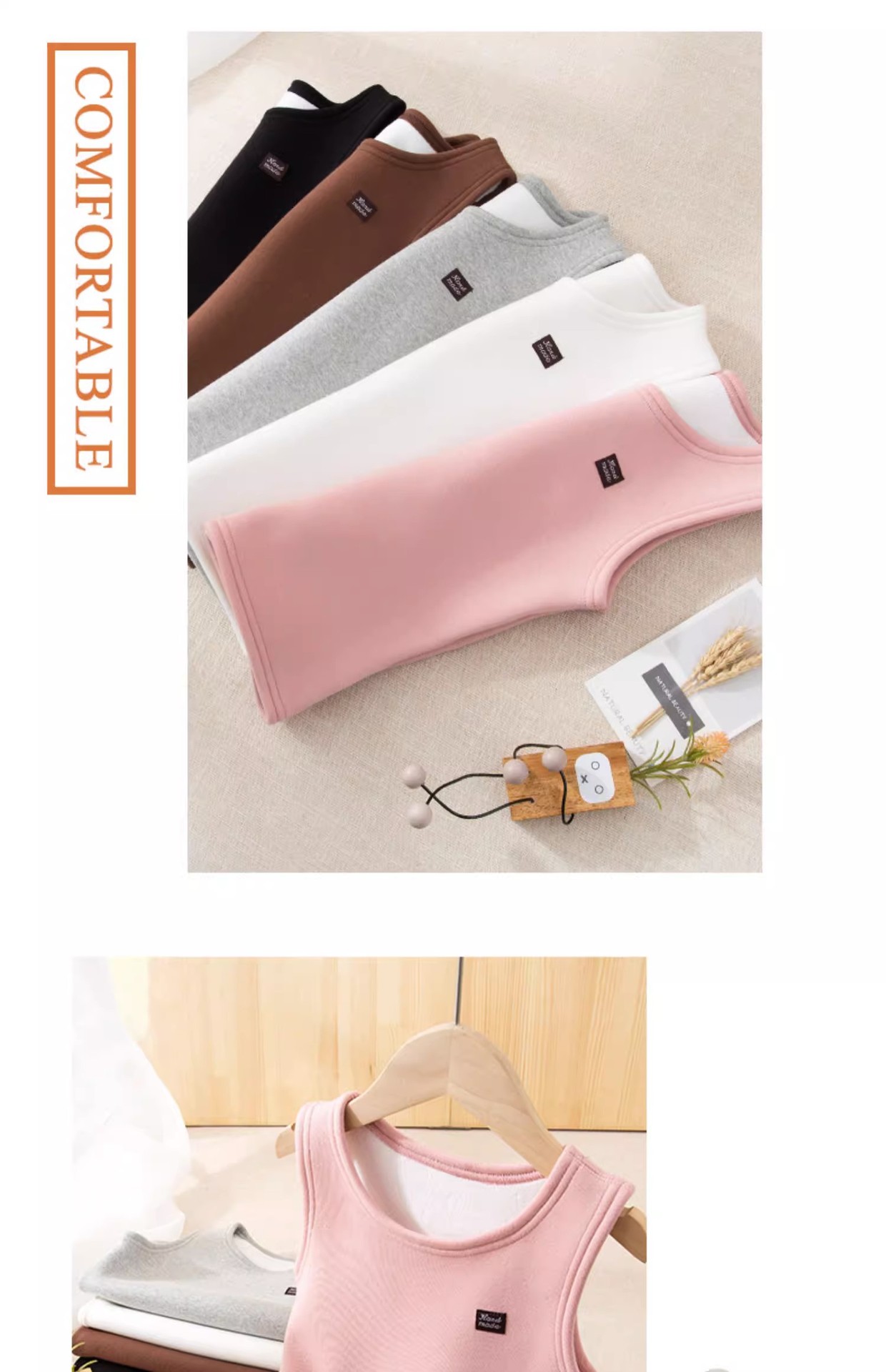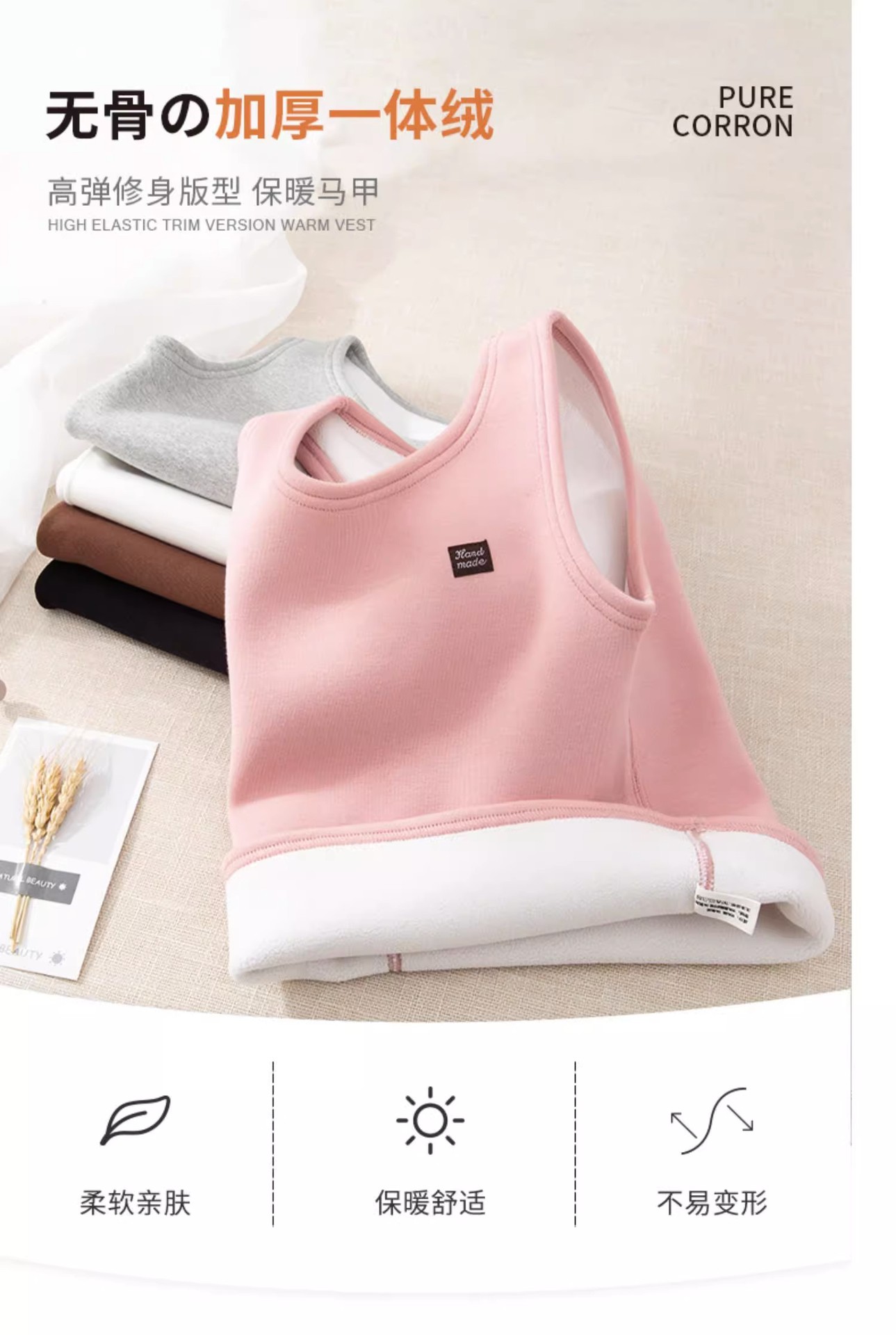 春と秋に着用できる、裏起毛で厚手の白いインナーウェア、保温性のある女の子用ベスト、男の子用文字入りノースリーブベスト。