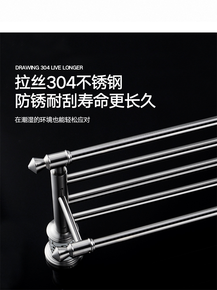 折り畳み式バスタオル掛け穴なし304ステンレス製フック付きタオル掛け棚壁掛け式浴室タオル掛け