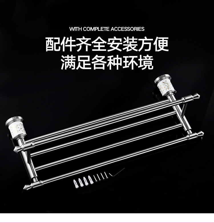 白いタオル掛け304ステンレスダントブラックタオルバー浴室掛け穴開けトイレ棚タオル