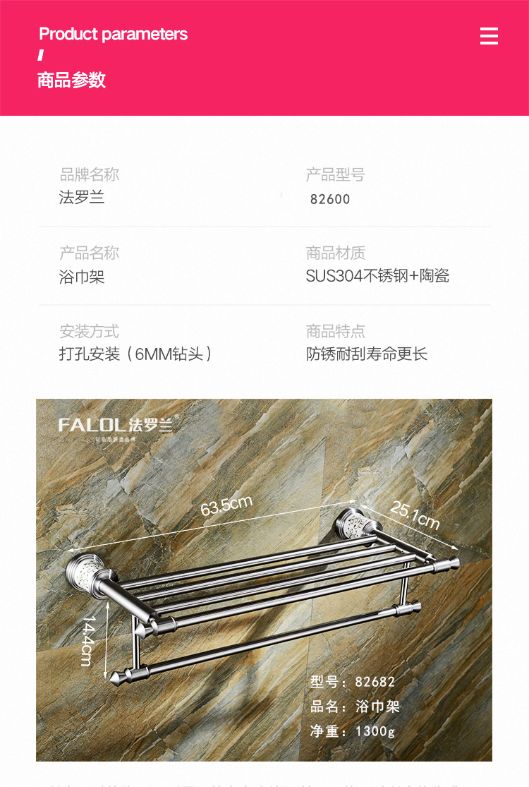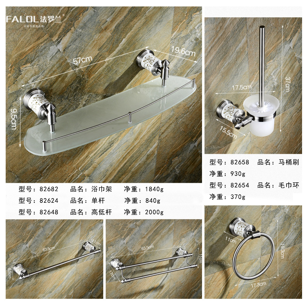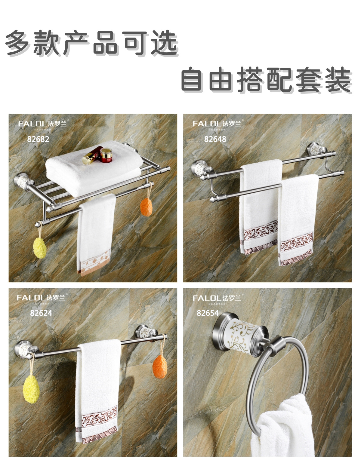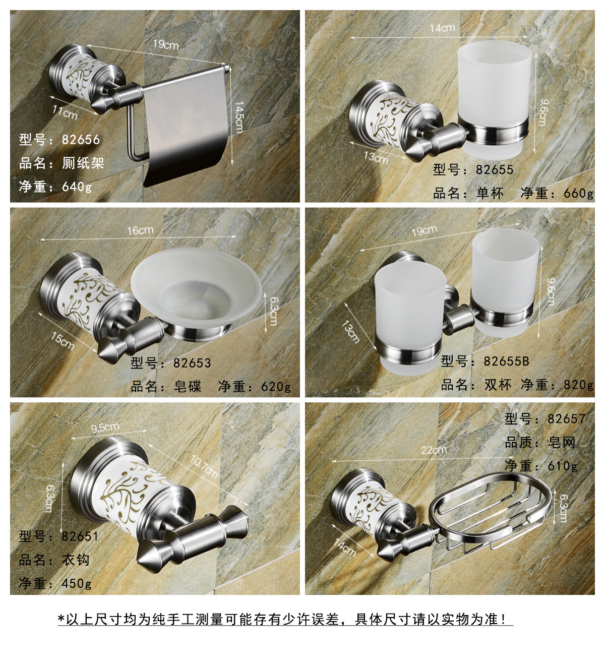 サイズ 82682 バスタオルラック,82648 ダブルポールタオルラック,82624 ワンポールタオルラック,82651 洋服掛け,82652 ドレッシングテーブル収納ラック,82653 ソープディッシュ,82654 タオルリング,82655 シングルカップ,82655B ダブルカップ,82656 ペーパータオルホルダー,82657 ソープネット,82658 トイレブラシセット
