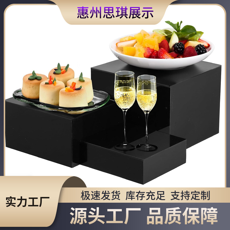 工厂3件黑色亚克力盒,亚克力立方体展示盒空心适用于自助餐桌派对