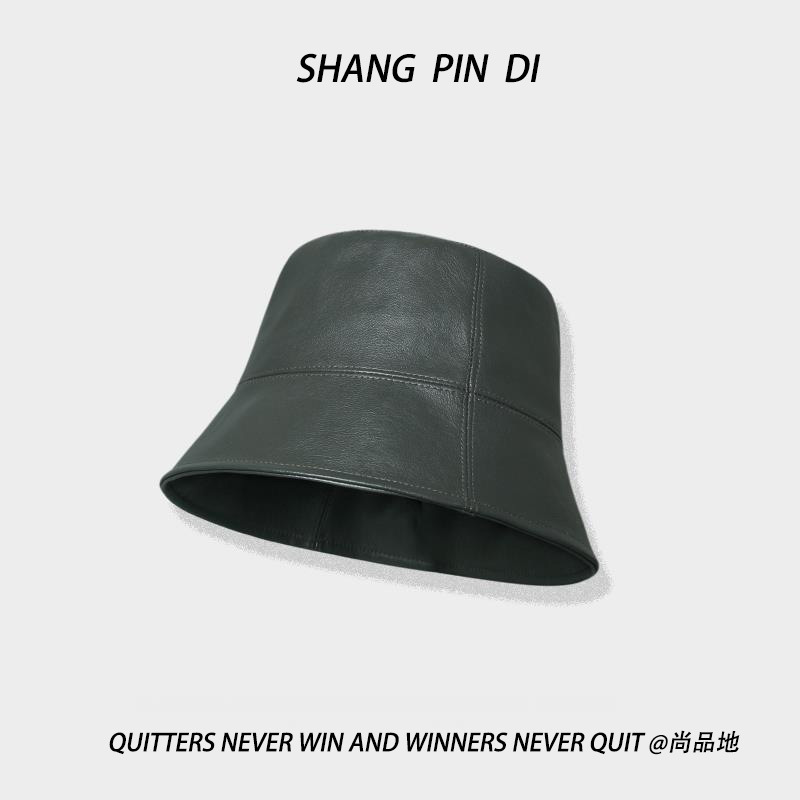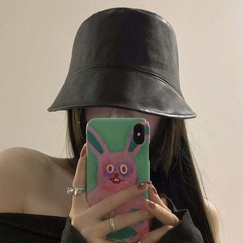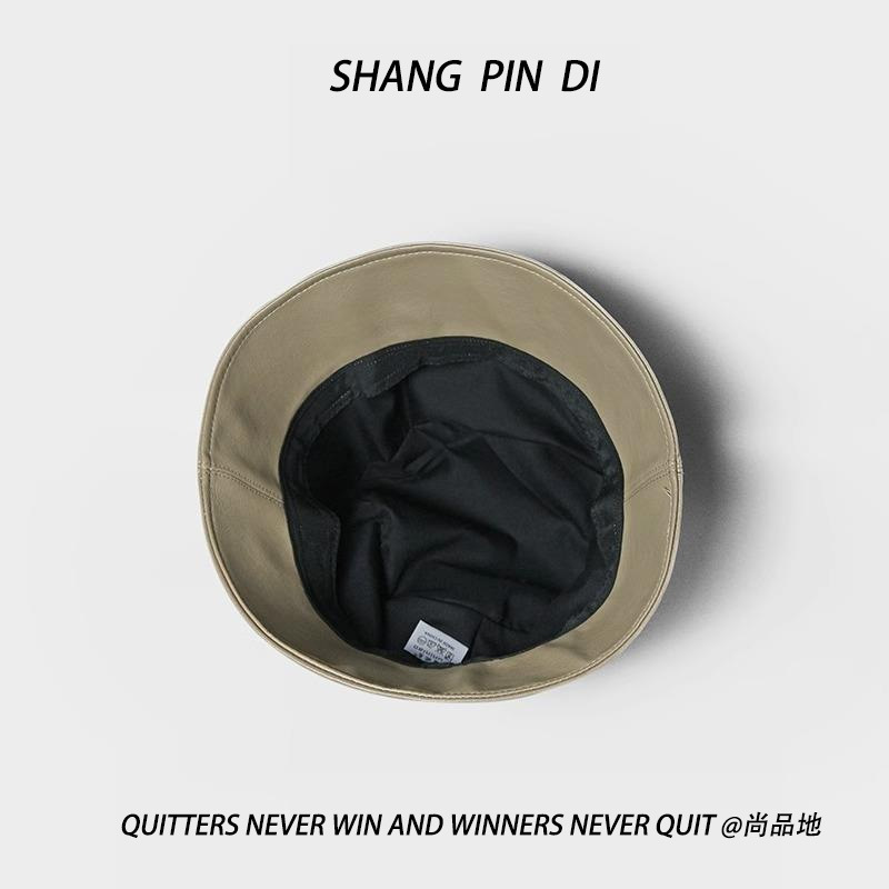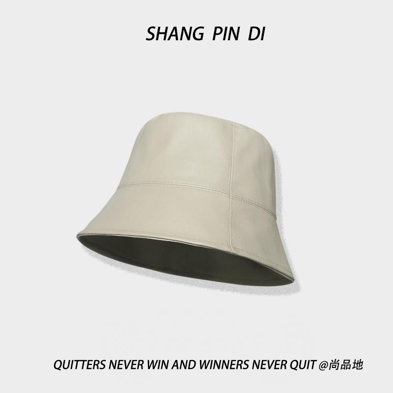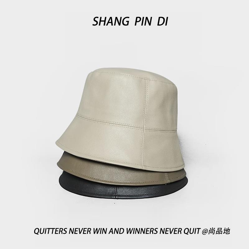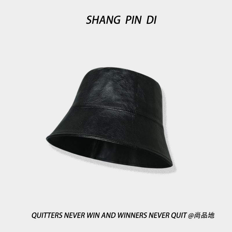 小さなPU皮質漁師帽子男女秋冬韓版百合日系街頭復古バケツ帽子盆帽潮