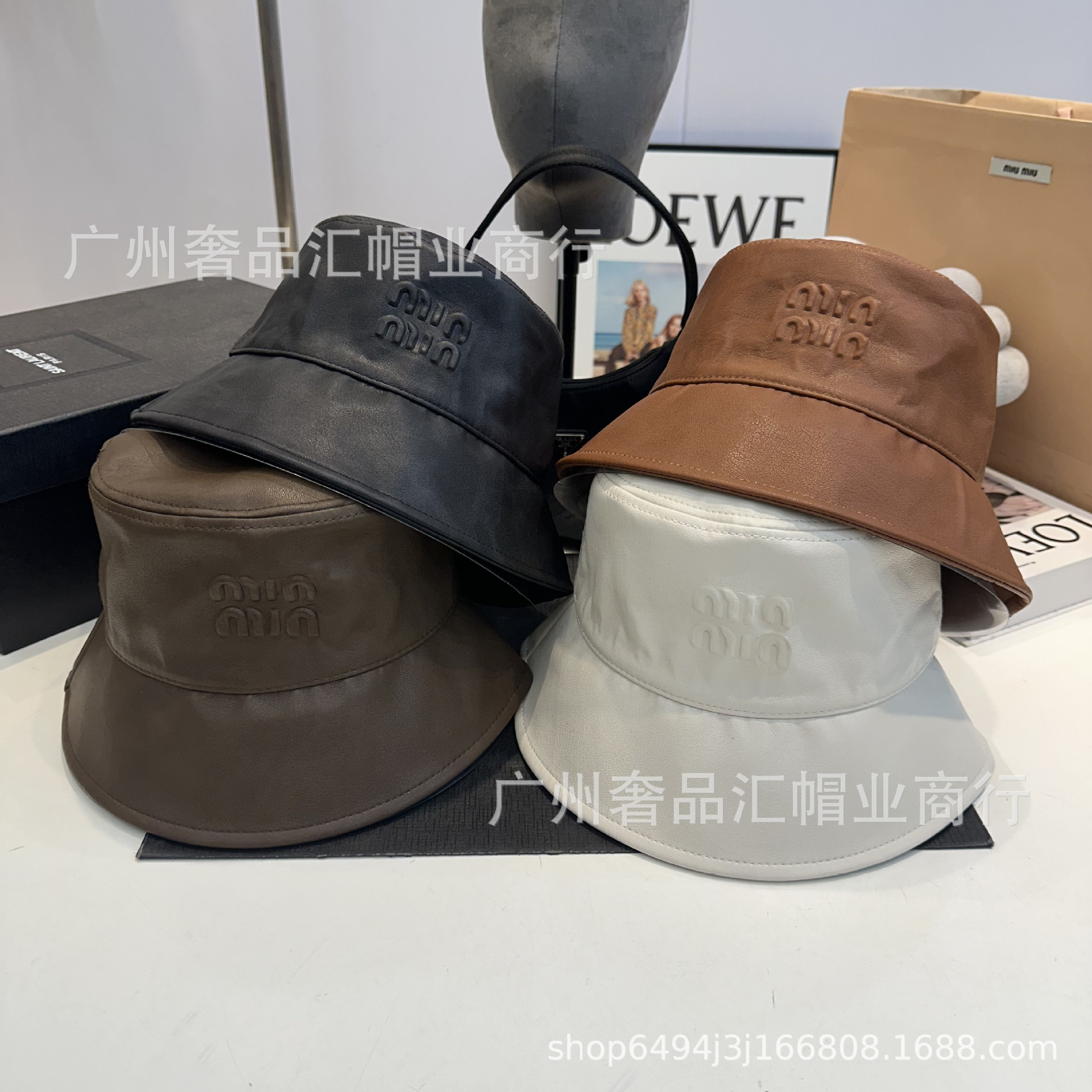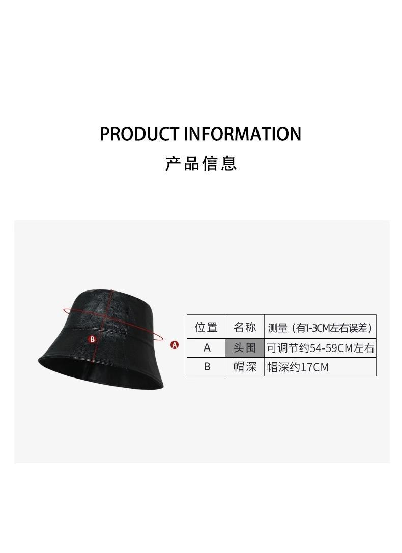 日系小众设计感素颜遮脸渔夫帽子女新款百搭pu皮质显脸小水桶帽潮