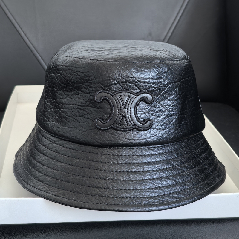 大衆デザイナーの漁師帽女pu皮カジュアル黒色バケツ帽秋冬皮帽子顔小盆帽男