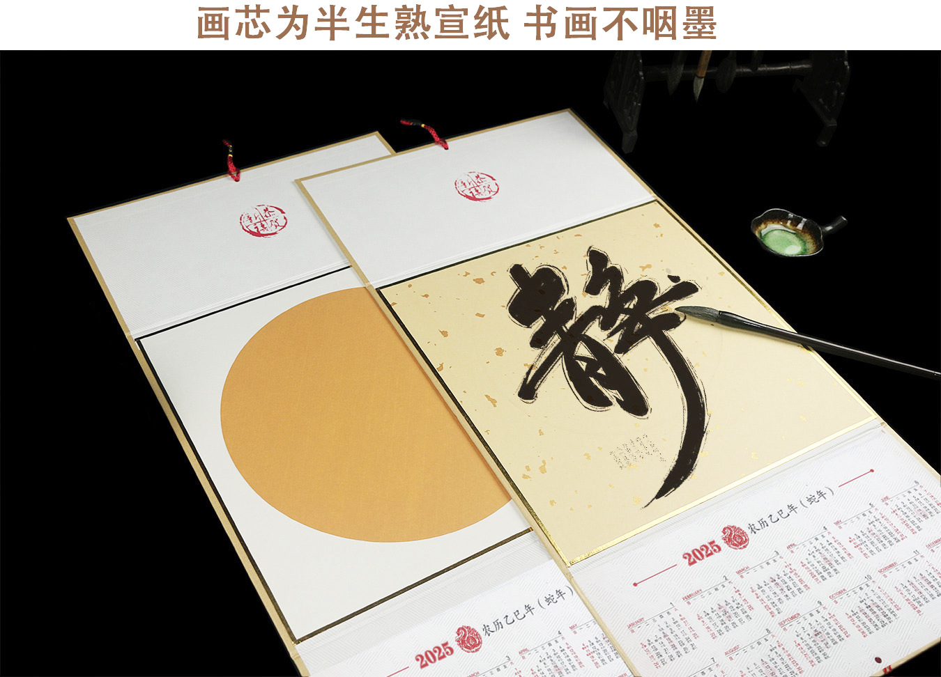 2025年折り畳み宣紙カレンダー蛇年カレンダー厚い空白ハードカード半生熟書道国画作品紙