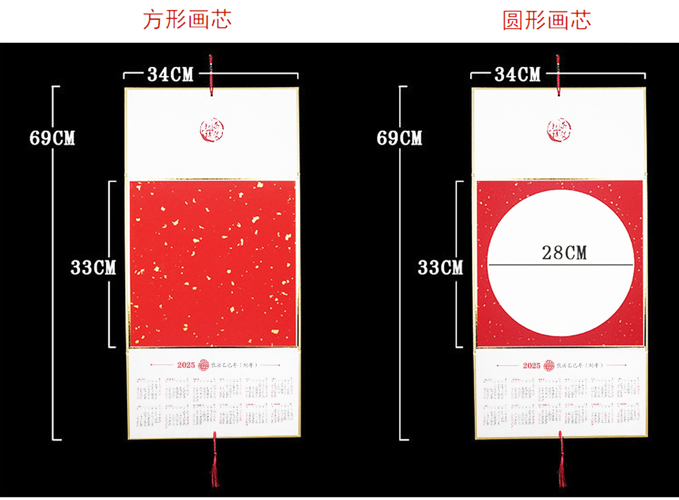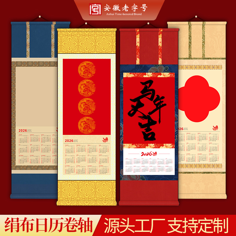 2026年挂历空白挂轴万年红日历马年绢布卷轴国画毛笔书法年历定制