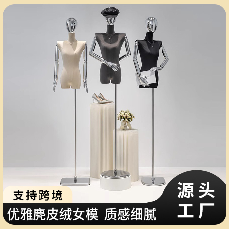 婦人服店モデル展示棚大平肩メッキスエードモデル高級ショーウインドー装飾人形道具