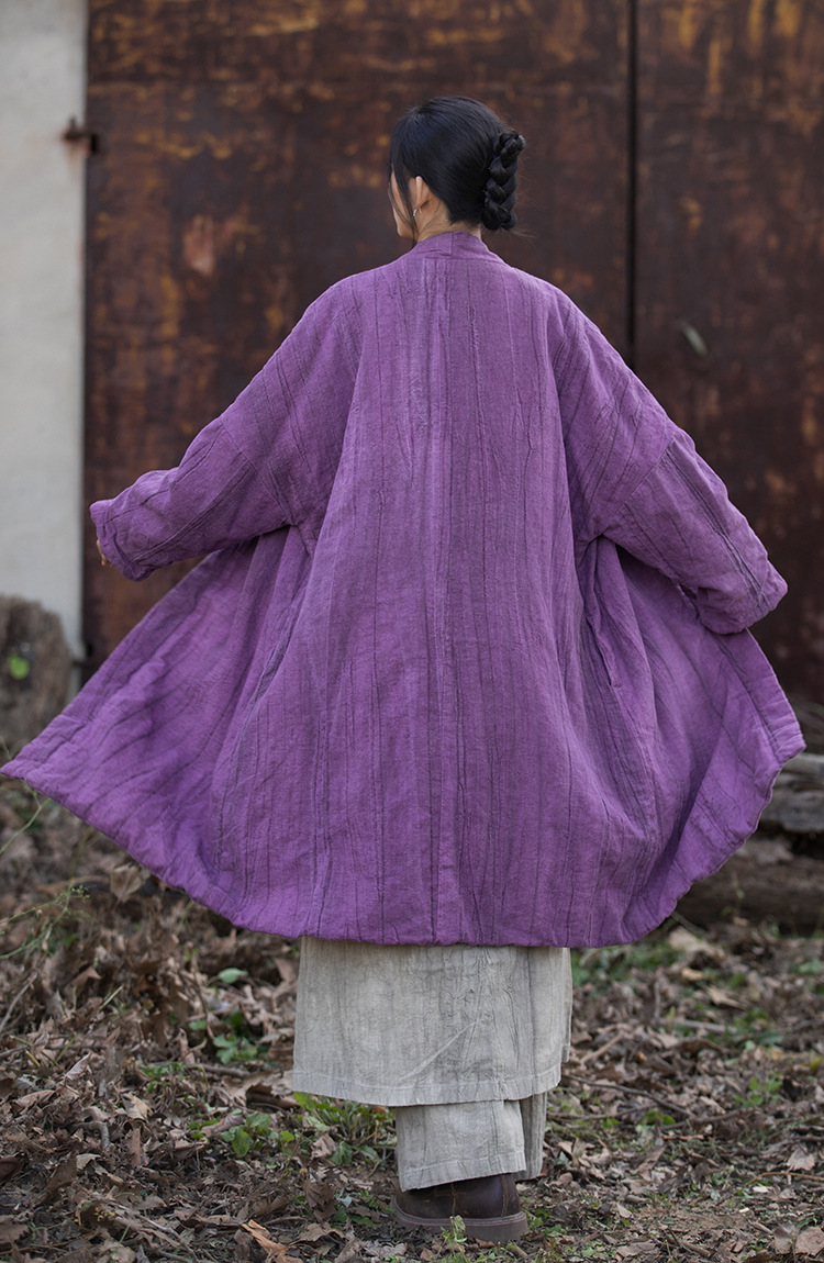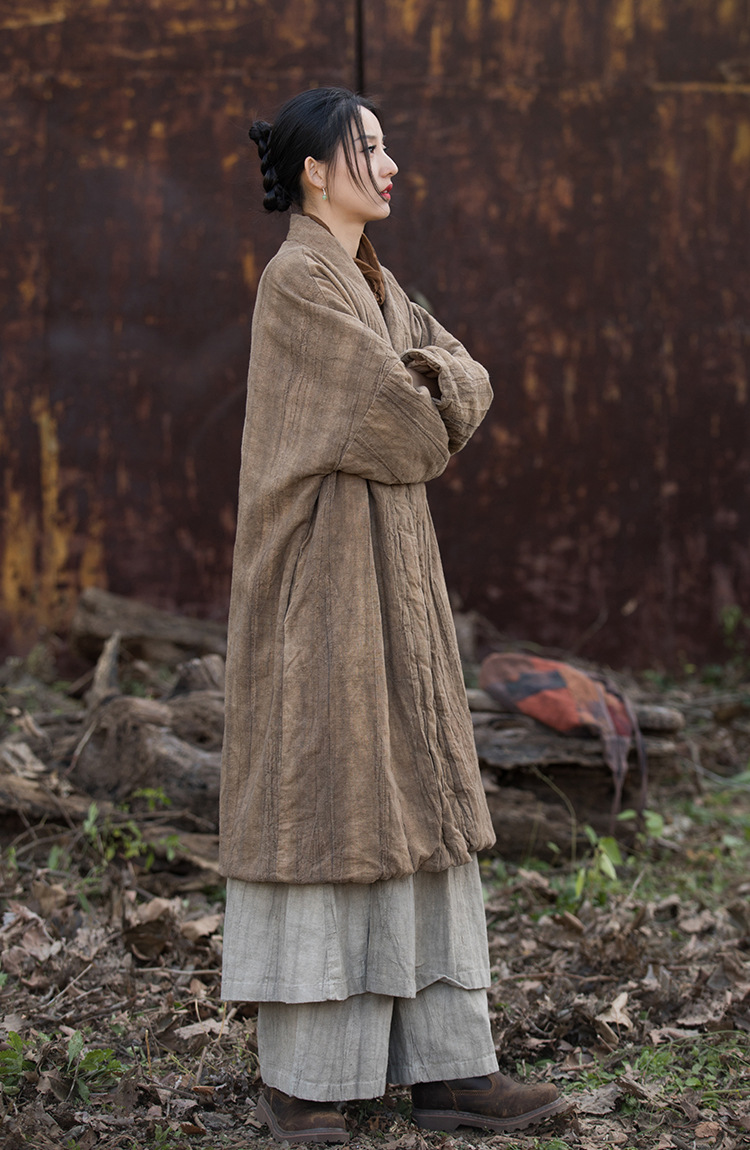 25冬新作婦人服、麻綿キルティング縦縞柄コットンジャケット、禅風ローマ風婦人服、綿入りローブ
