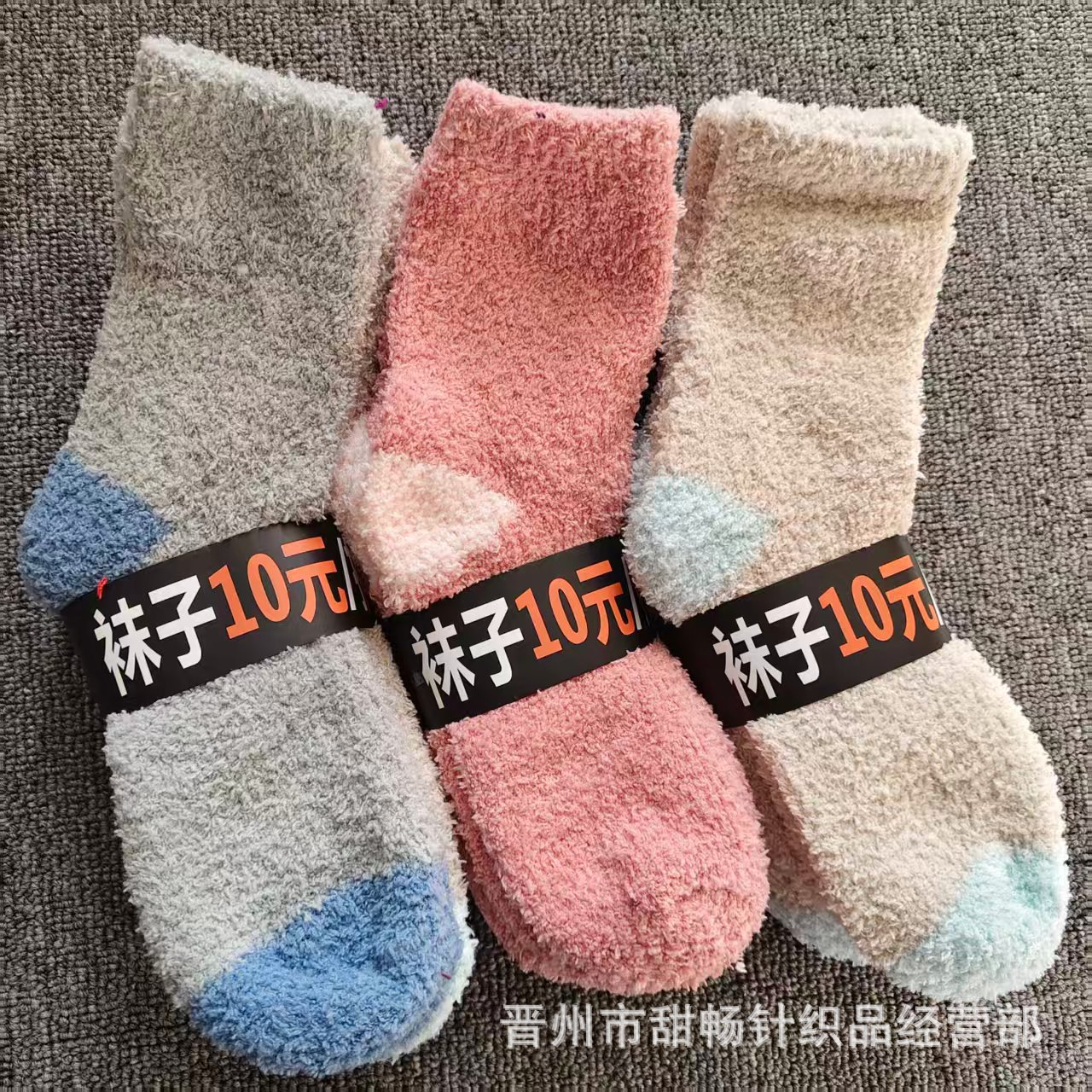 秋冬加绒加厚珊瑚绒十元一捆女士中筒袜子柔软亲肤睡眠袜月子袜