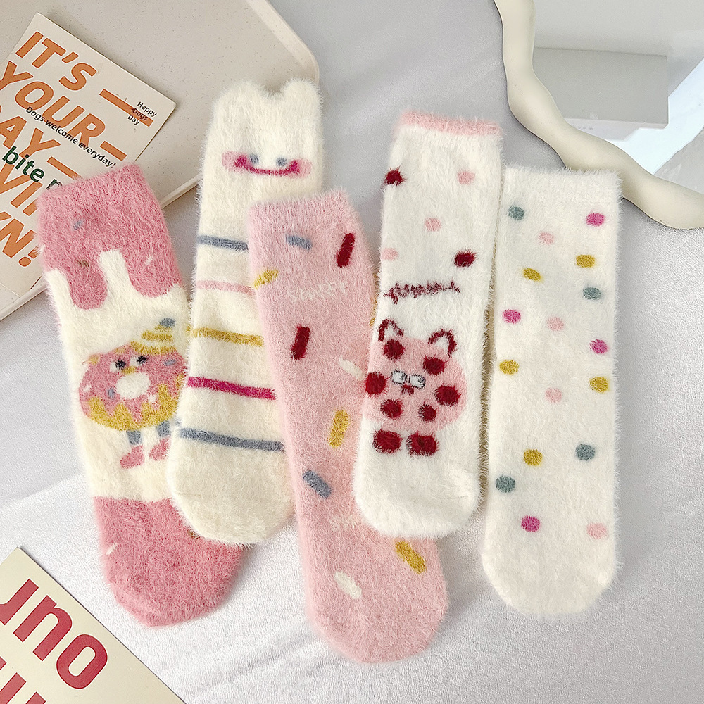 ミンクの靴下の女性の中筒の靴下のぬいぐるみの秋冬の保温のサンゴの絨毯の睡眠の靴下は厚くてかわいい家の睡眠の靴下