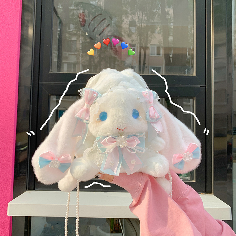 日本の甘くて柔らかい萌えのアニメのウサギのぬいぐるみは女性のかわいい少女の学生のハンドバッグの誕生日のプレゼントのショルダーバッグを包みます。