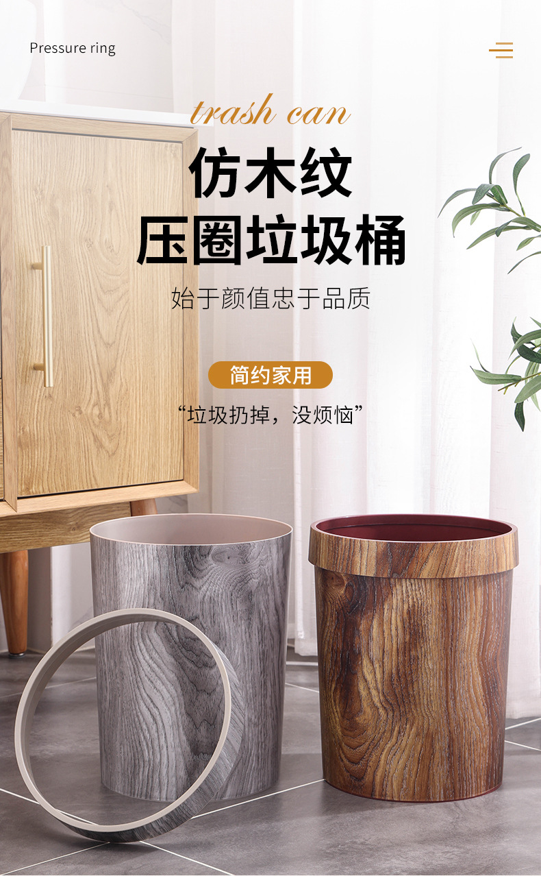 14リットルのレトロな木目の家庭用リビングルームの台所のトイレのホテルのホテルの圧力輪のプラスチックのゴミ箱