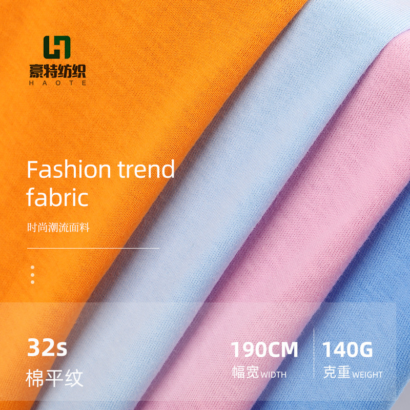32s綿平織り生地、綿100%ストレッチニット、コーマ糸汗布140g、春夏用純綿伸縮性片面Tシャツ生地