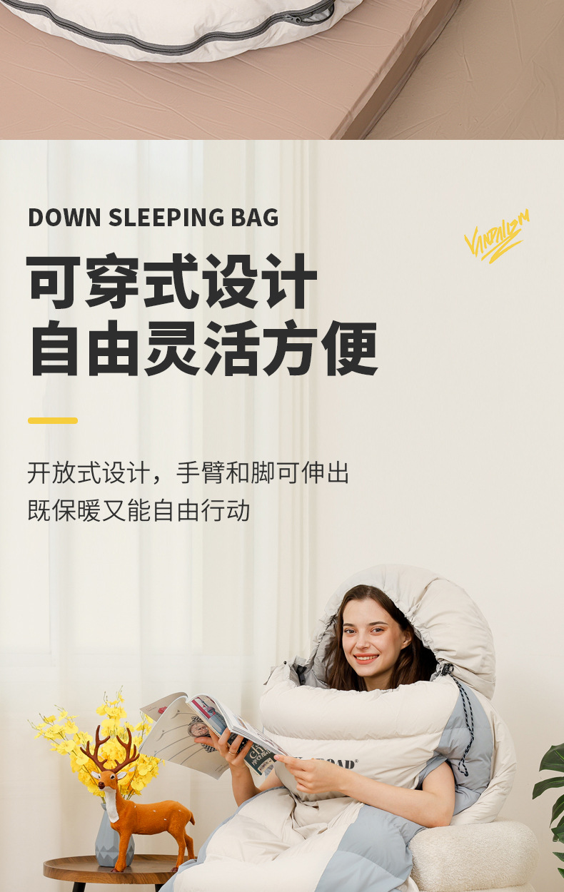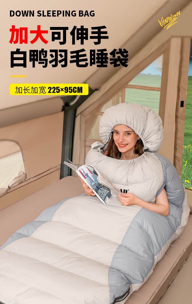 白鴨の羽の寝袋屋外大人キャンプキャンプ秋冬ダウン寝袋室内保温クロスボーダー流通