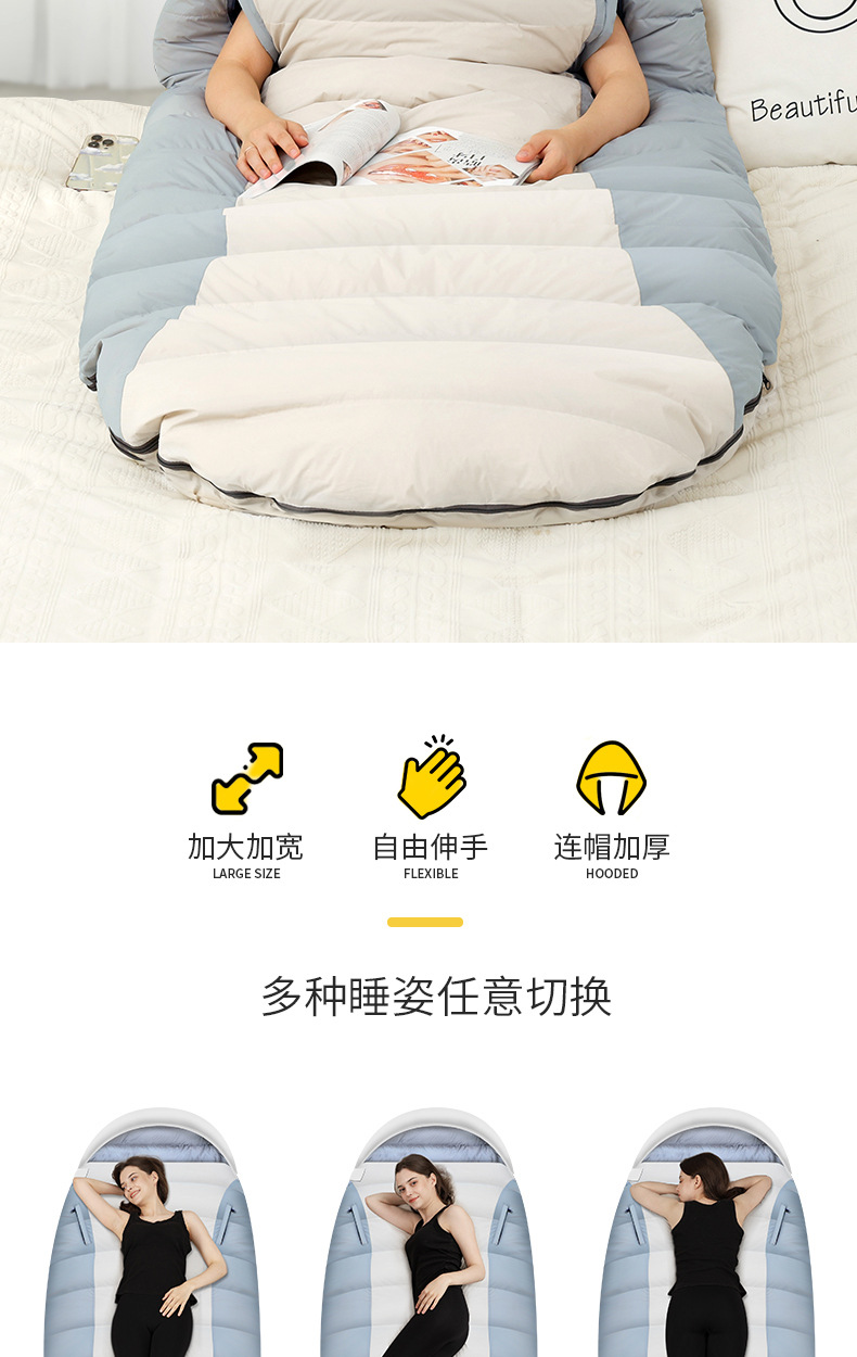 ダウン寝袋大人屋外キャンプ大人秋冬厚手防寒四季通用型ダウン綿昼休み