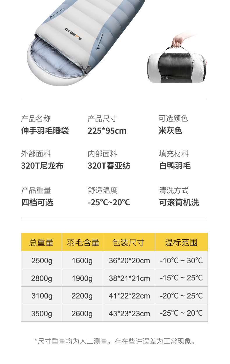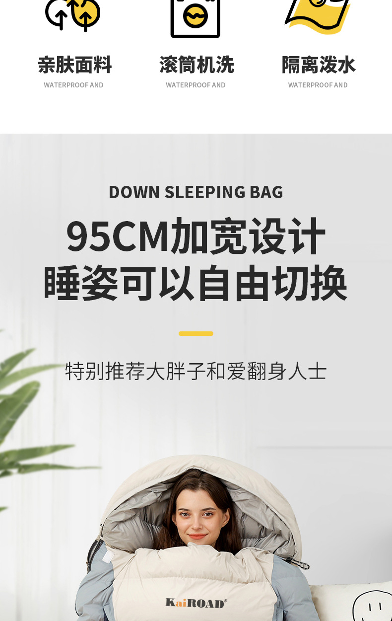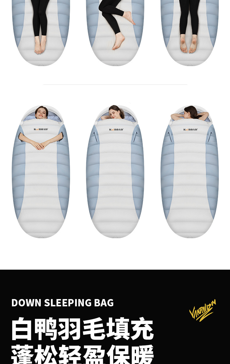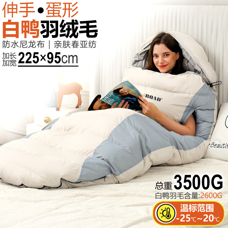 户外露营睡袋旅行白鸭羽毛睡袋蛋形冬季抗寒信封式保暖睡袋加厚
