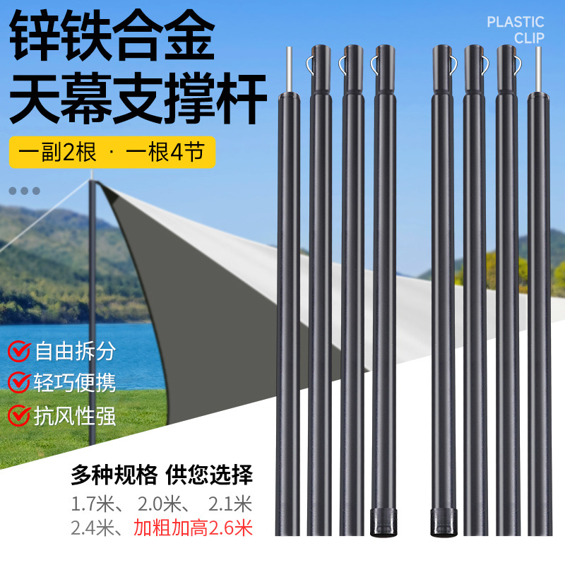 2.6mの延長キャノピーサポートロッド、アウトドアキャンプ用25mm太いサポートロッド、日よけブラケット、テントホールサポートロッド