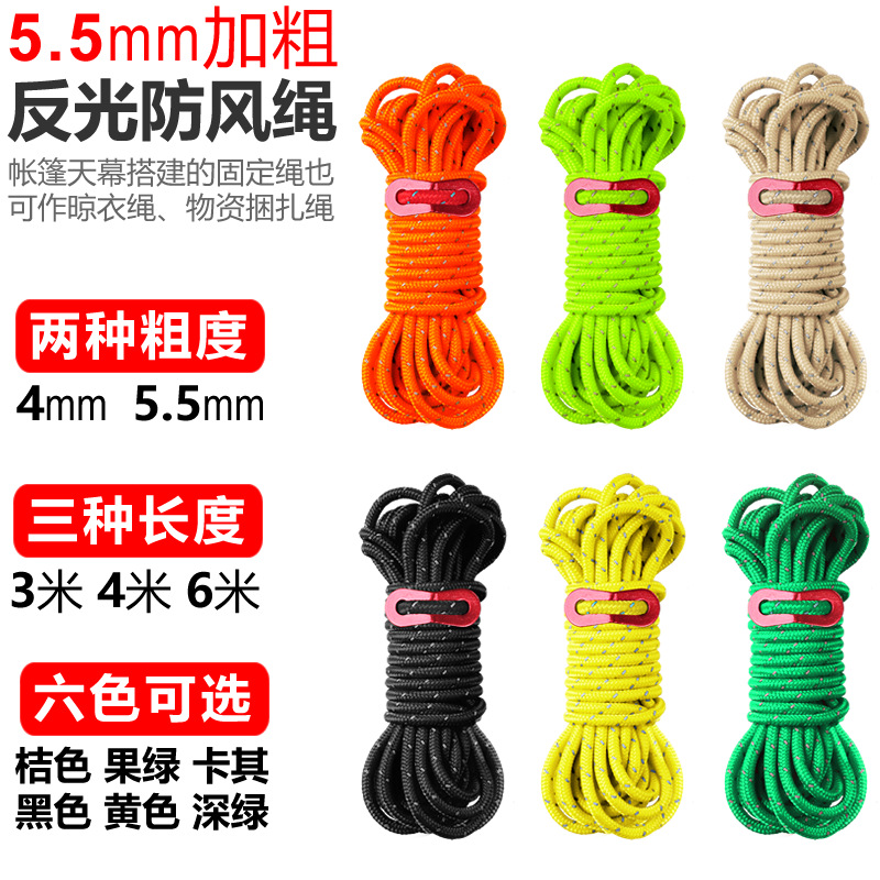 6mm厚キャンプテント防風ロープ3.4m6mアウトドアキャンプテントキャノピー調整バックル付き反射ロープ