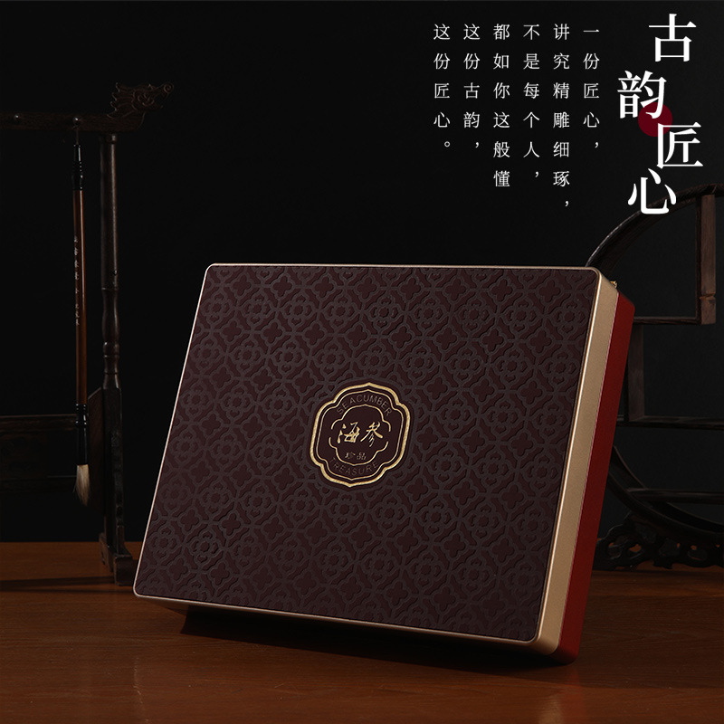 箱ナマコの皮の中にプラスチックのギフトボックスを包装します。