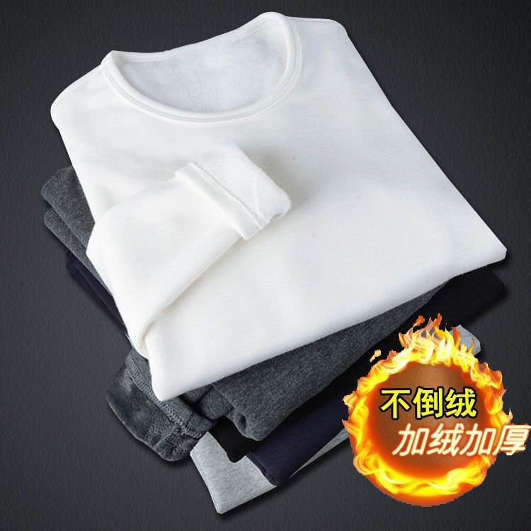 秋冬季男士加绒加厚不倒绒保暖长袖t恤圆领打底衫秋衣冬长袖2025