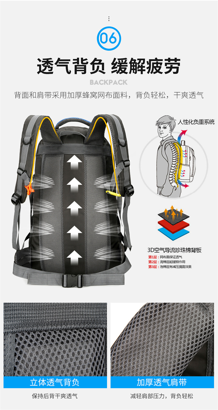 国境を越えた新しいアウトドア登山バッグ、大容量トラベルバッグ、メンズバックパック、ショルダーアウトドアバッグ、スポーツ登山バックパック