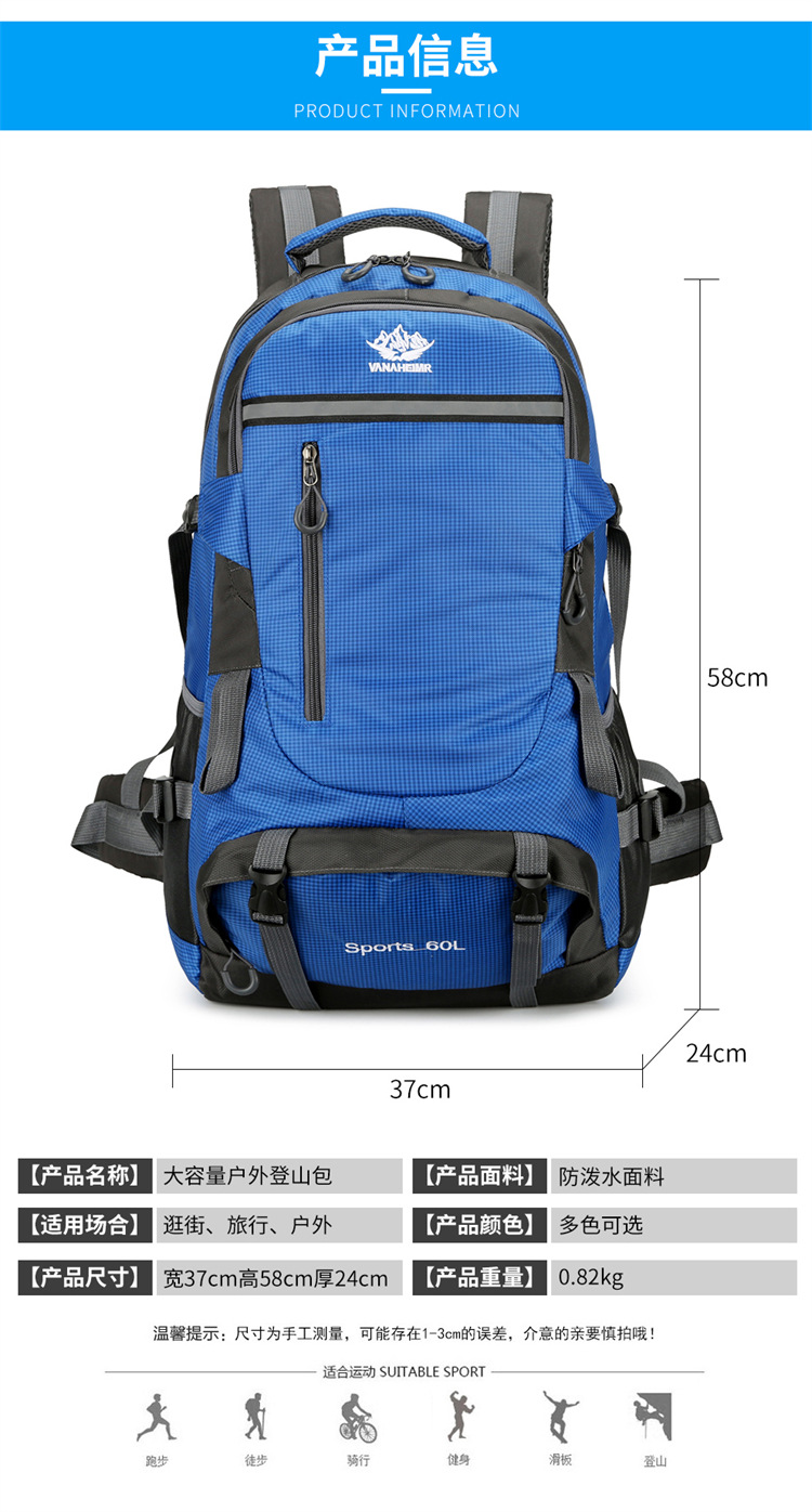 アウトドア登山バッグアマゾンクロスボーダー60Lリュックサック男女大容量軽量徒歩リュックサック